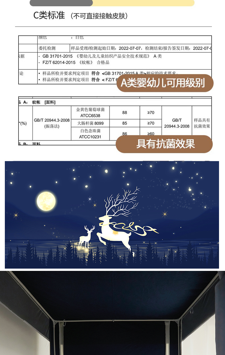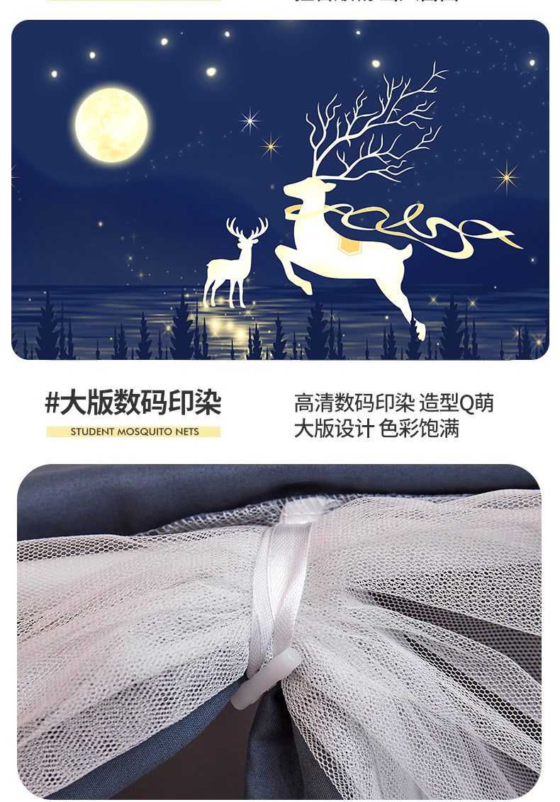 商品名称:锦逸家居 2025新款防遮光防蚊学生床帘式蚊帐 奔月鹿