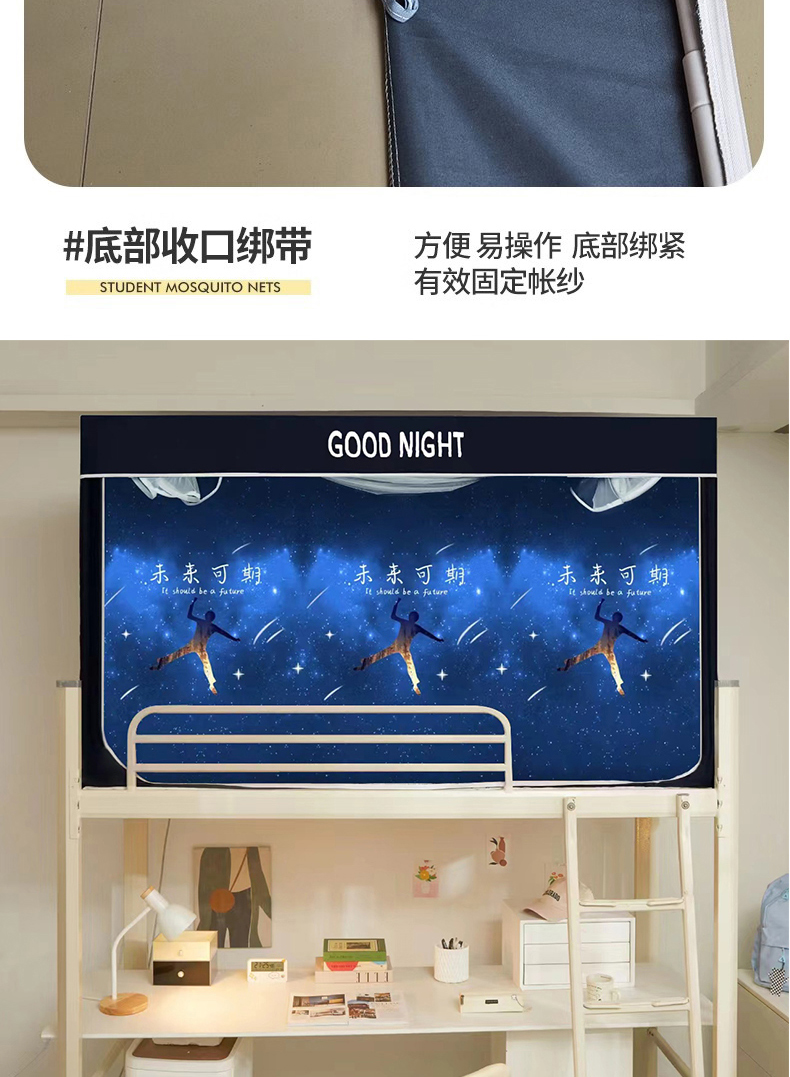 (总)锦逸家居 2025新款防遮光防蚊学生床帘式蚊帐,奔月鹿,鲸鱼灰色,太空人,未来可期
