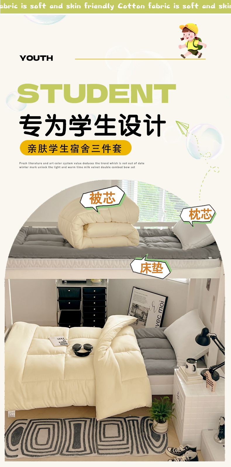 1.5m6斤被子+0.9m3斤床垫