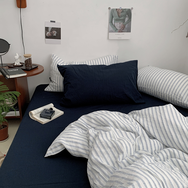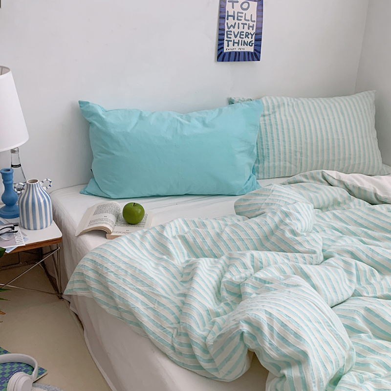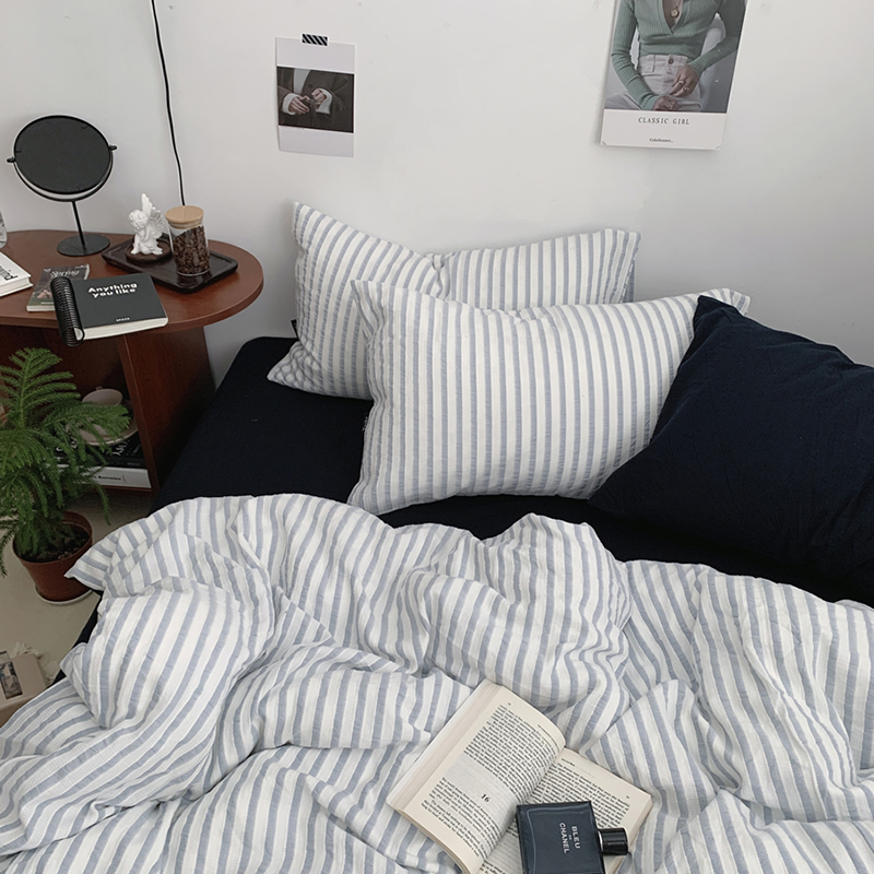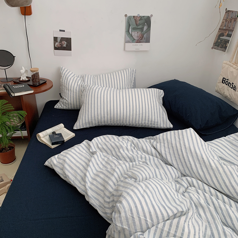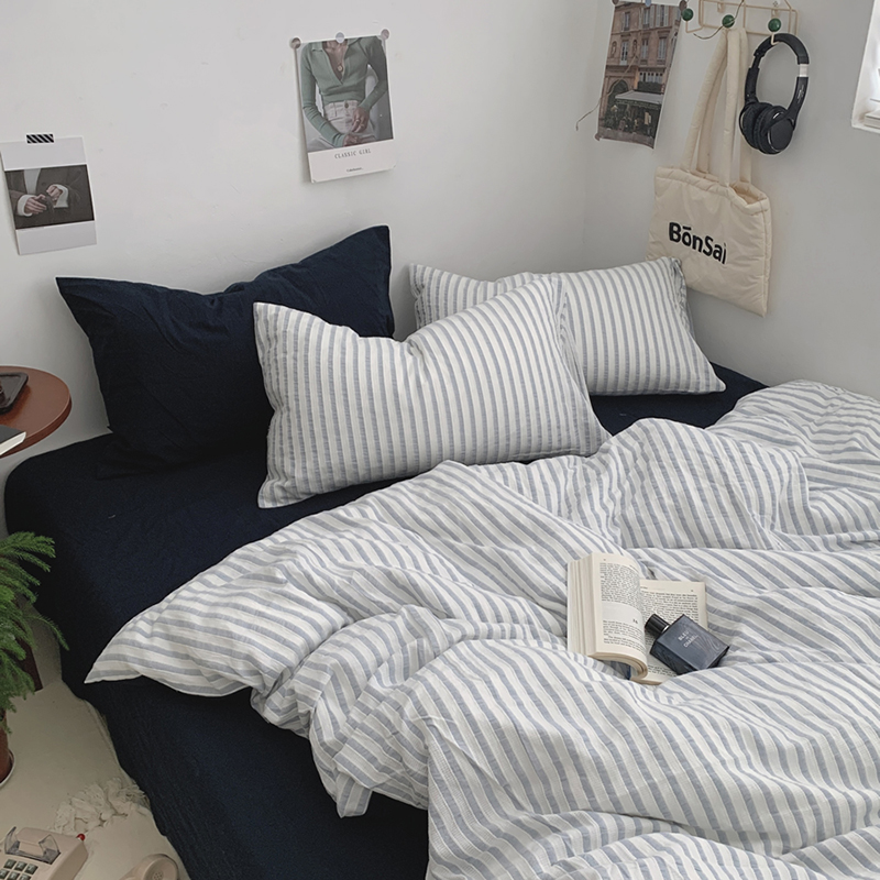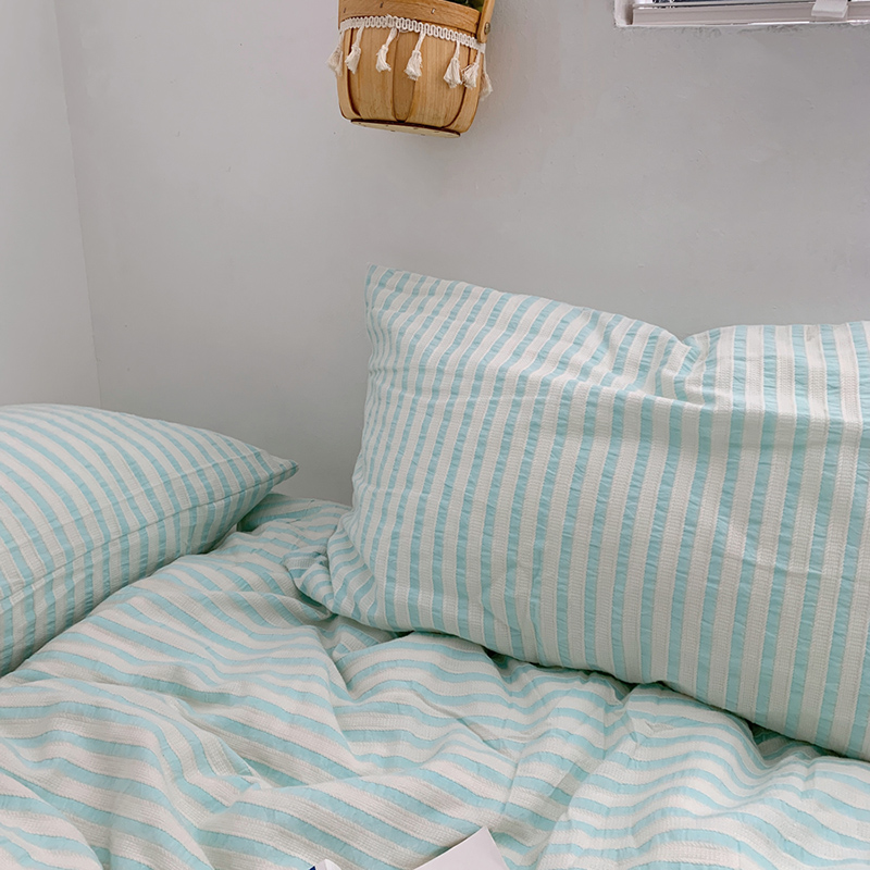 当前位置: 91家纺网 > 商品网购 > 床品套件 > 四件套 > 全棉普通四件套 > 柚可家居 2024新款雾蓝条纹提花水洗棉四件套(送手提袋) 天蓝条纹提花 白色