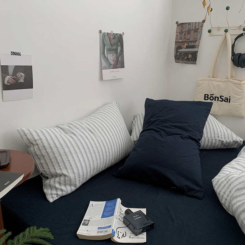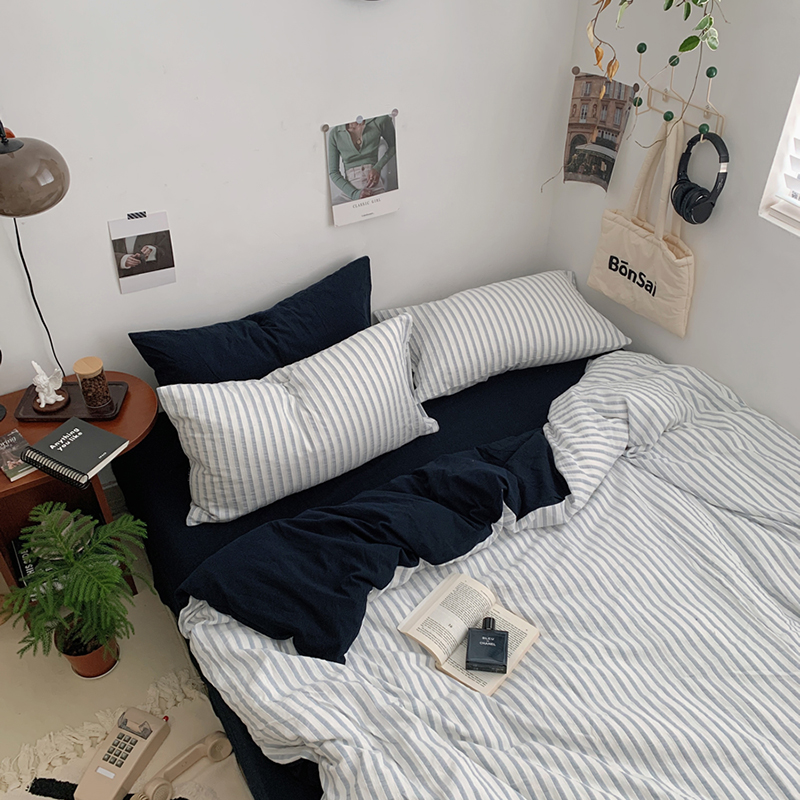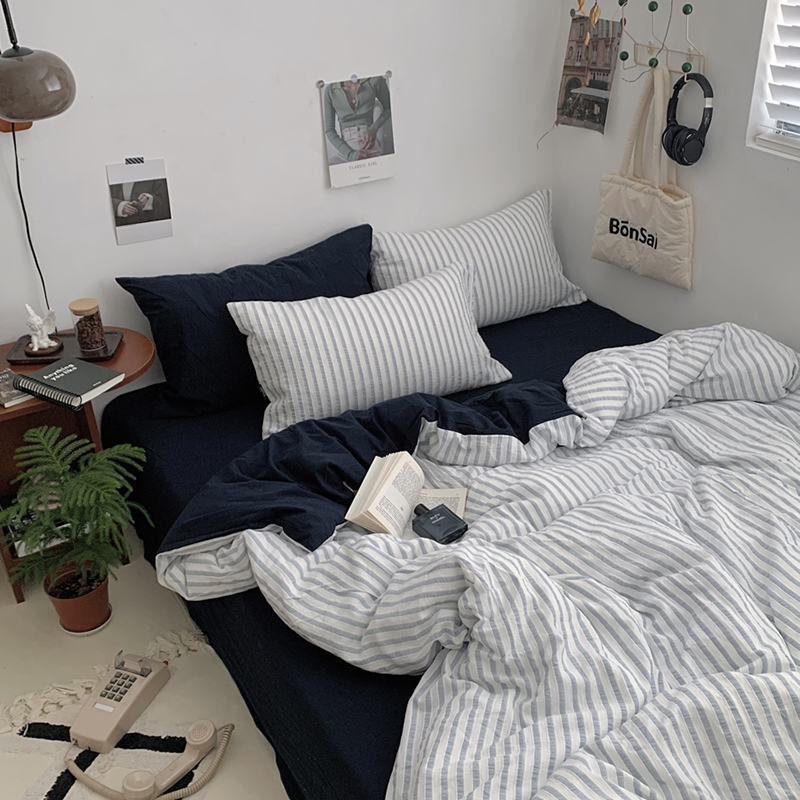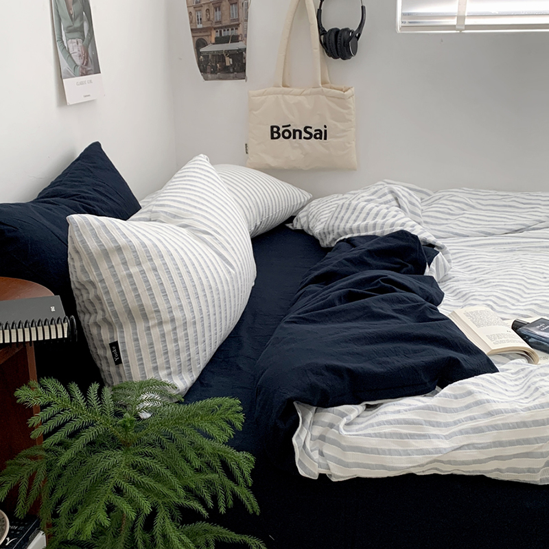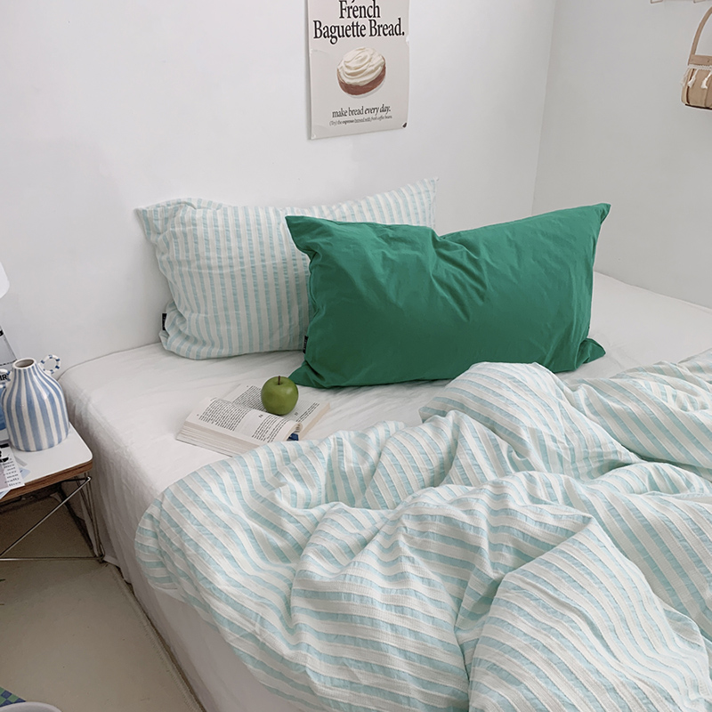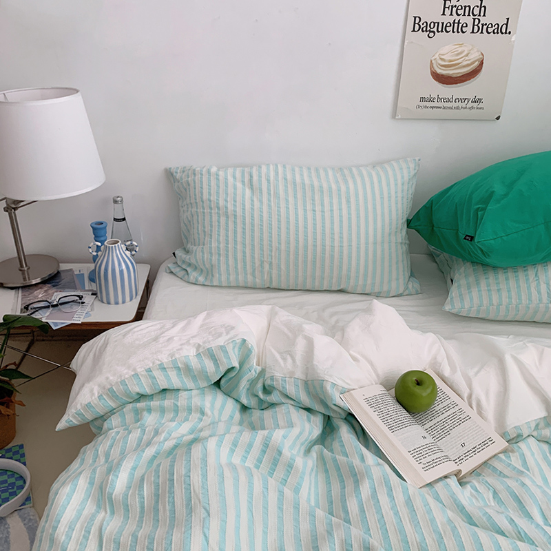 当前位置: 91家纺网 > 商品网购 > 床品套件 > 四件套 > 全棉普通四件套 > 柚可家居 2024新款雾蓝条纹提花水洗棉四件套(送手提袋) 天蓝条纹提花 白色
