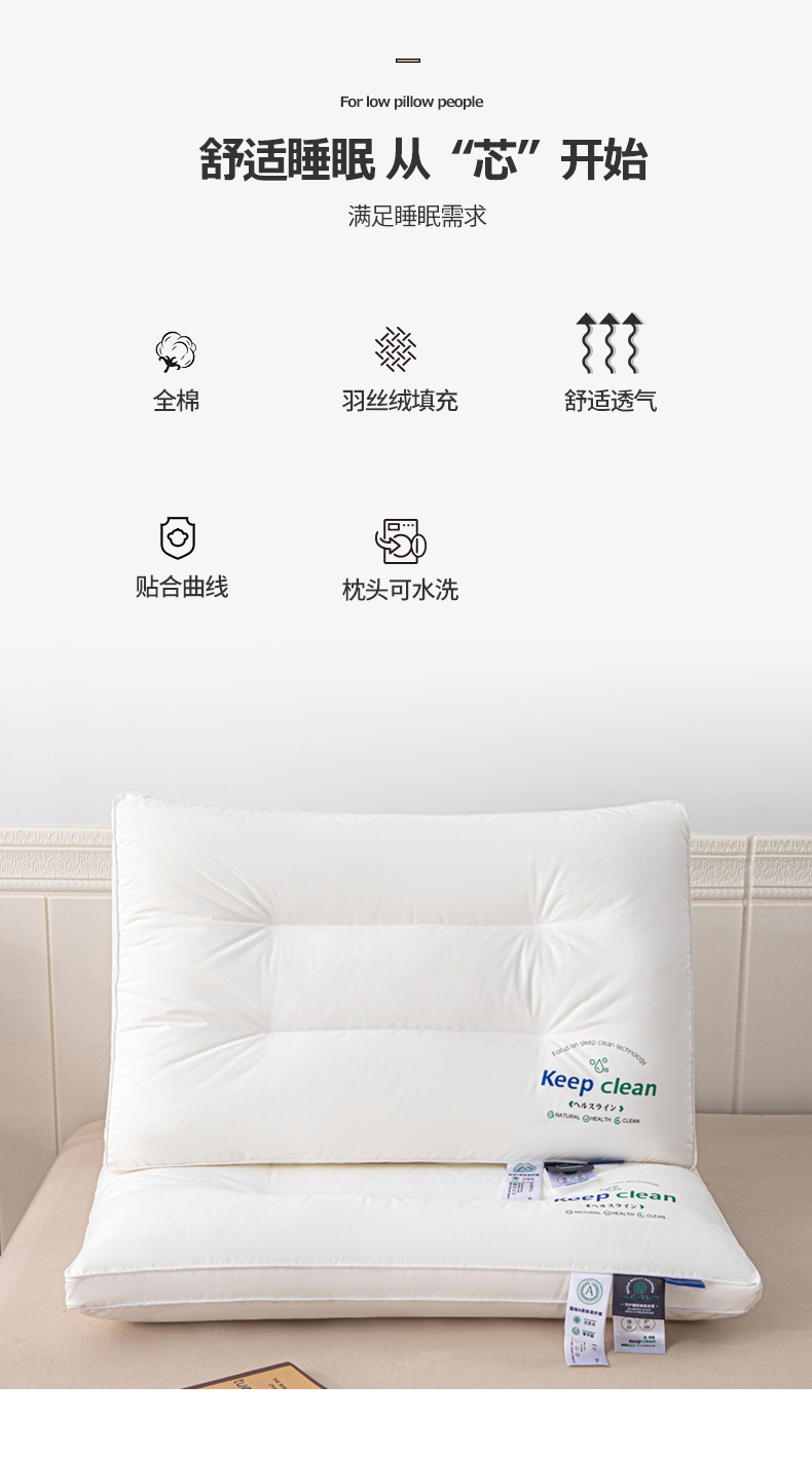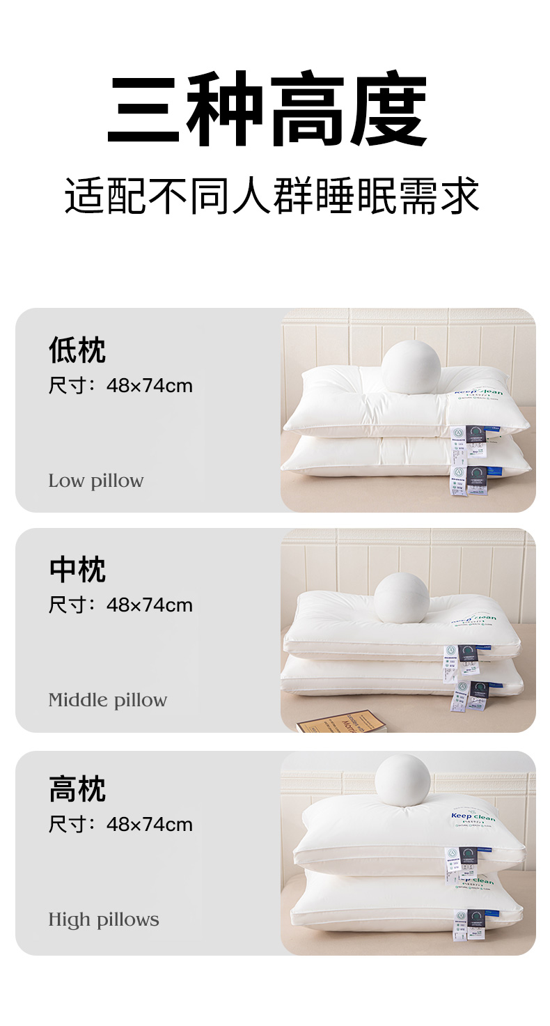 当前位置: 91家纺网 > 商品网购 > 枕头/枕芯/保健枕/颈椎枕 > 怡薇格枕芯2025新款全棉a类羽丝绒印字分区护颈枕头枕芯大化纤维枕头枕芯 中枕一只