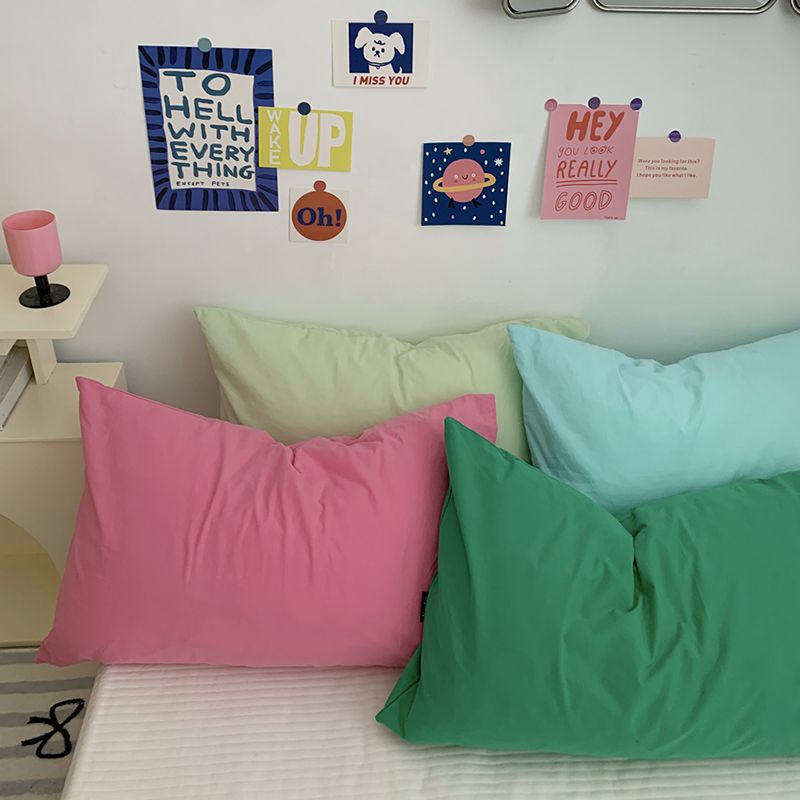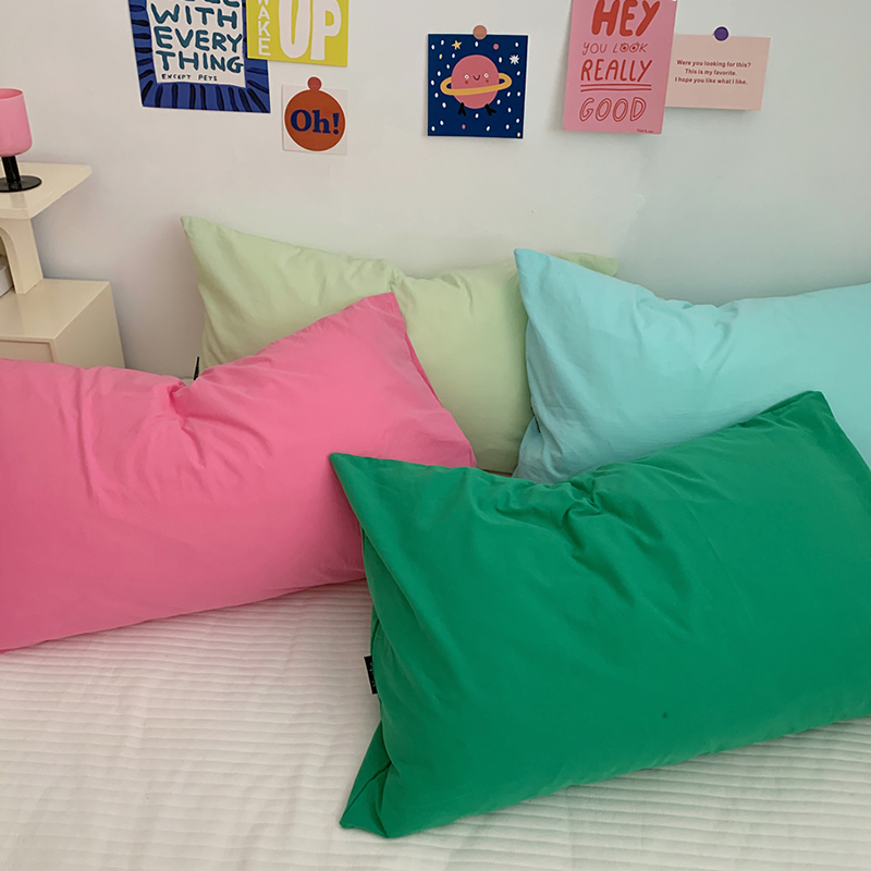 柚可家居 2024新款水洗棉40支全棉色织单枕套纯色系列四 淡蓝色