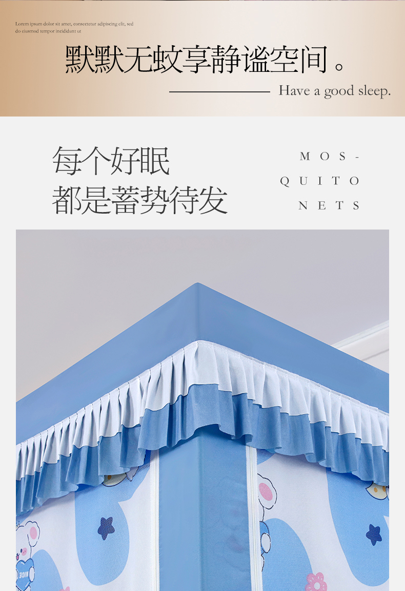 当前位置: 91家纺网 > 商品网购 > 床上用品 > 蚊帐 > 坐床式蚊帐 > 显高蚊帐 2025春夏新款U门花边款坐床遮光防尘床帘式蚊帐 甜心小狗-花边款