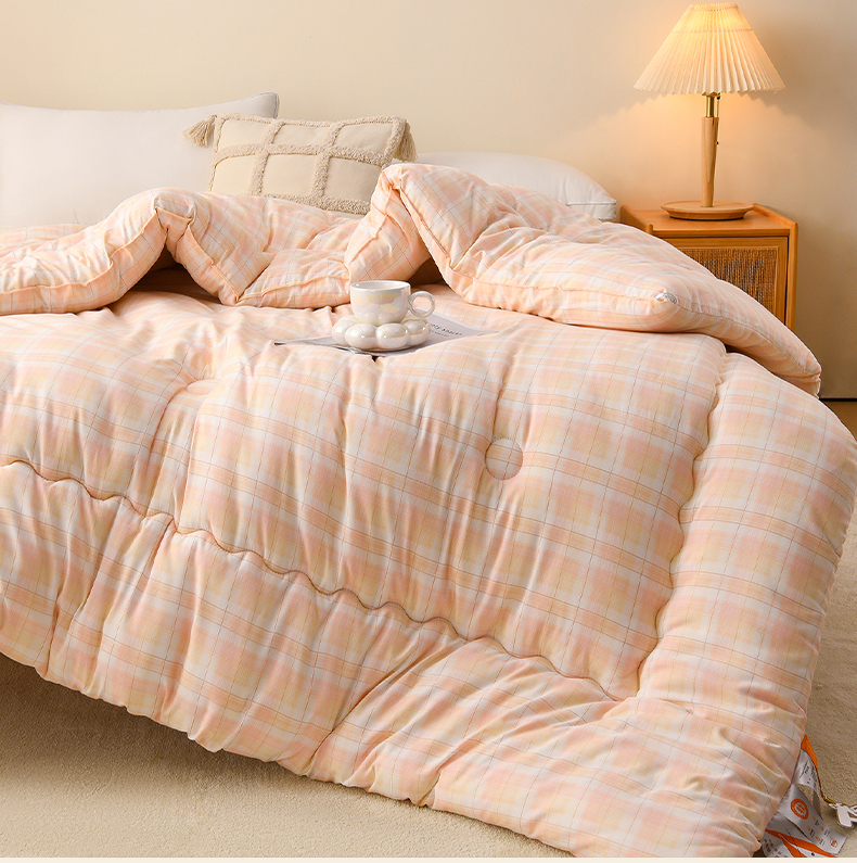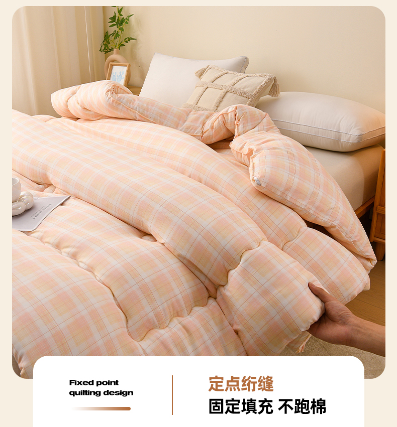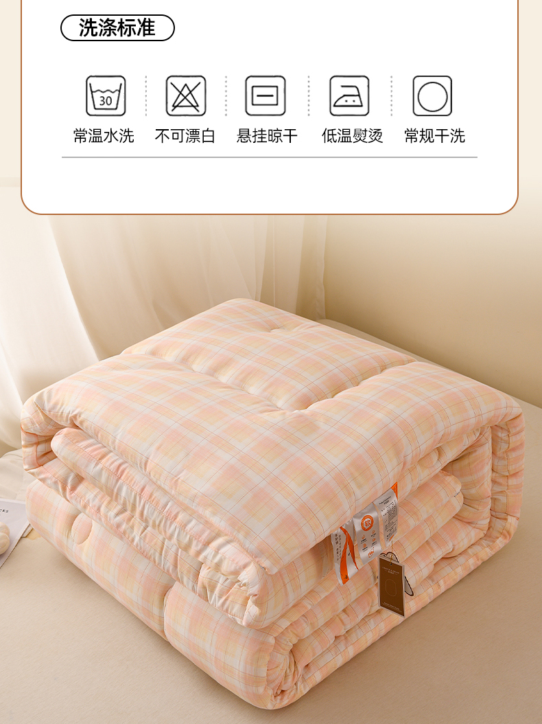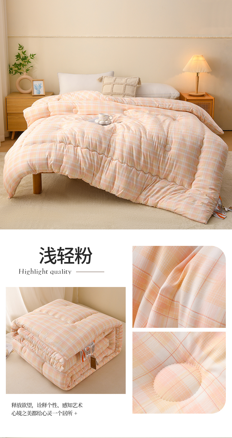 • 91家纺网 家纺一手货源 找家纺 易展2025新款无印水洗棉格子大豆冬被 浅轻粉