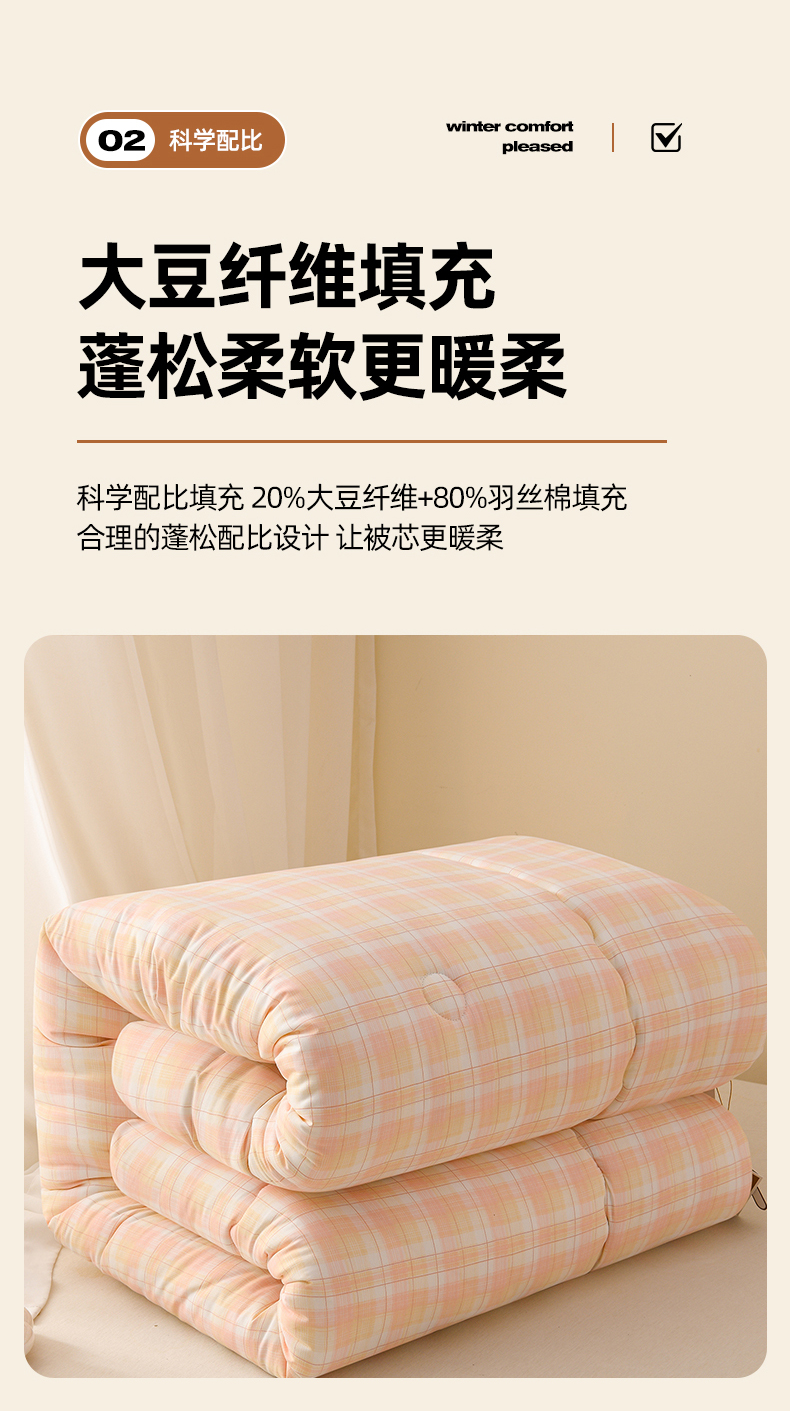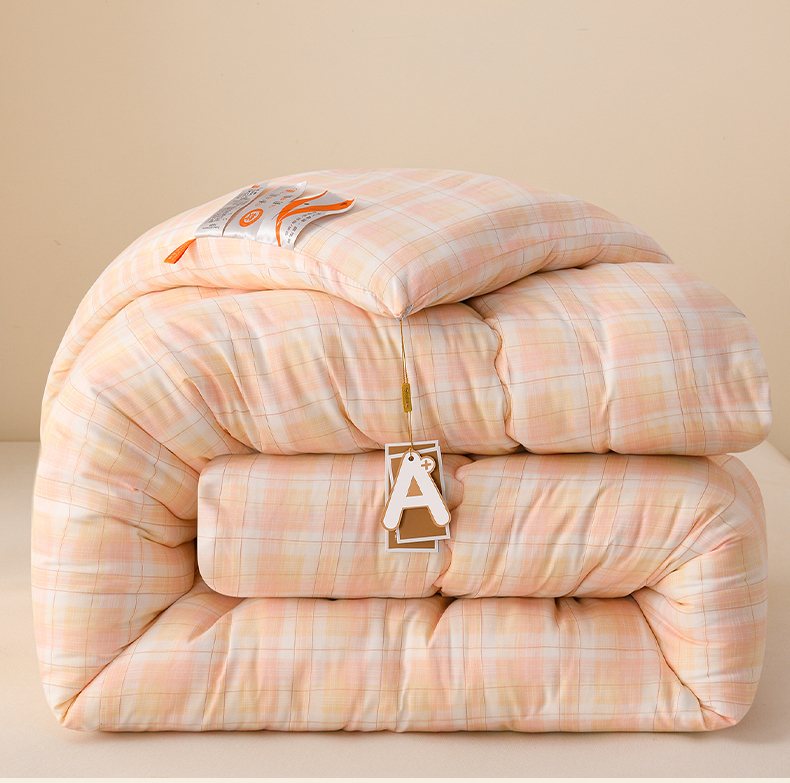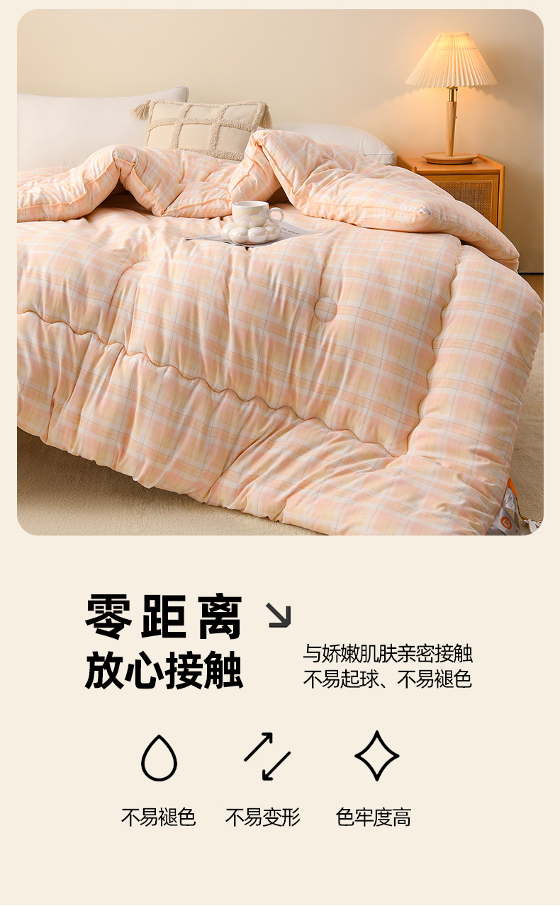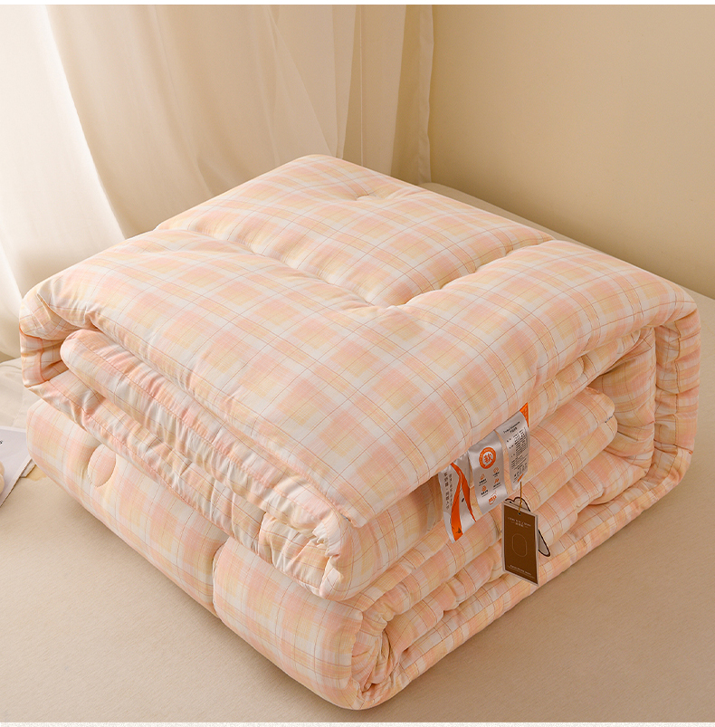 • 91家纺网 家纺一手货源 找家纺 易展2025新款无印水洗棉格子大豆冬被 浅轻粉