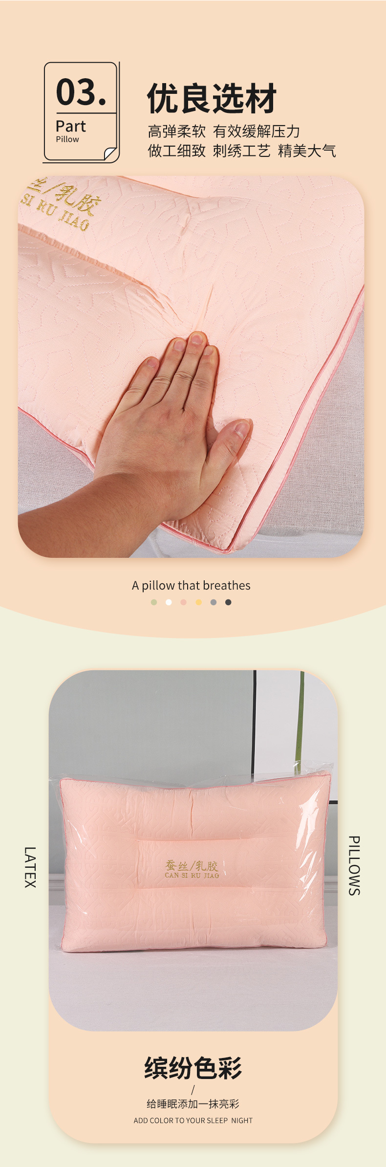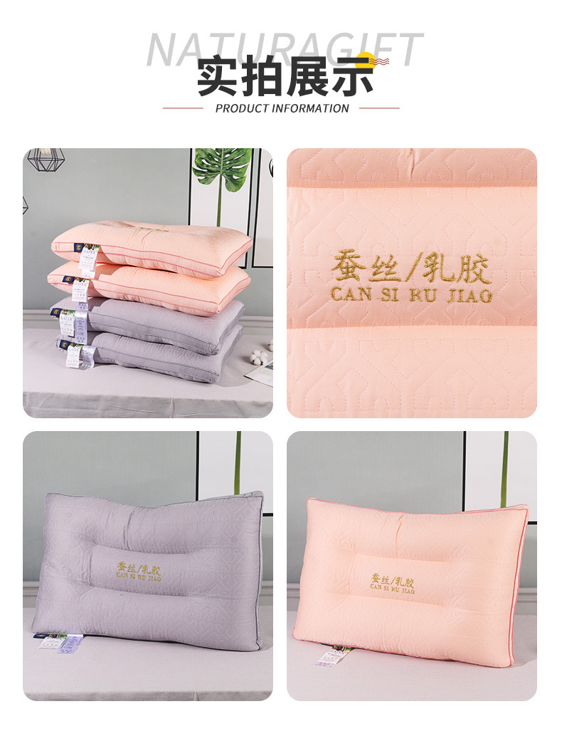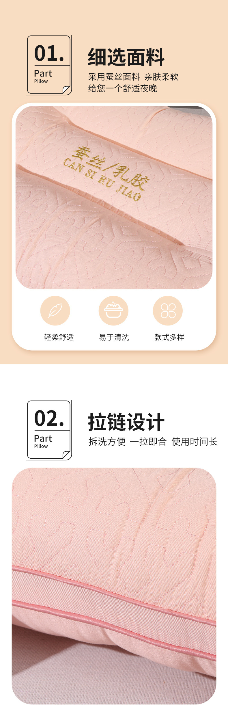 蚕丝乳胶枕-粉色48*74cm中枕一对