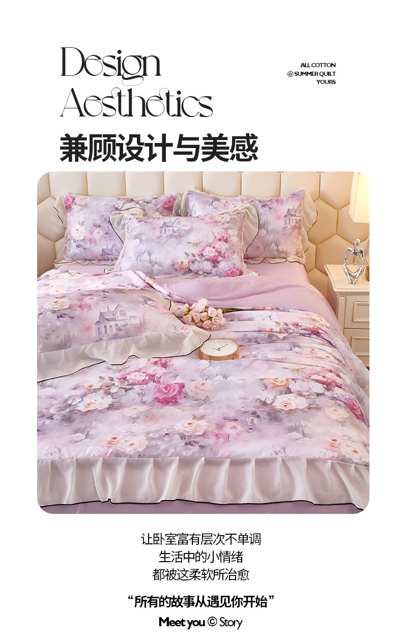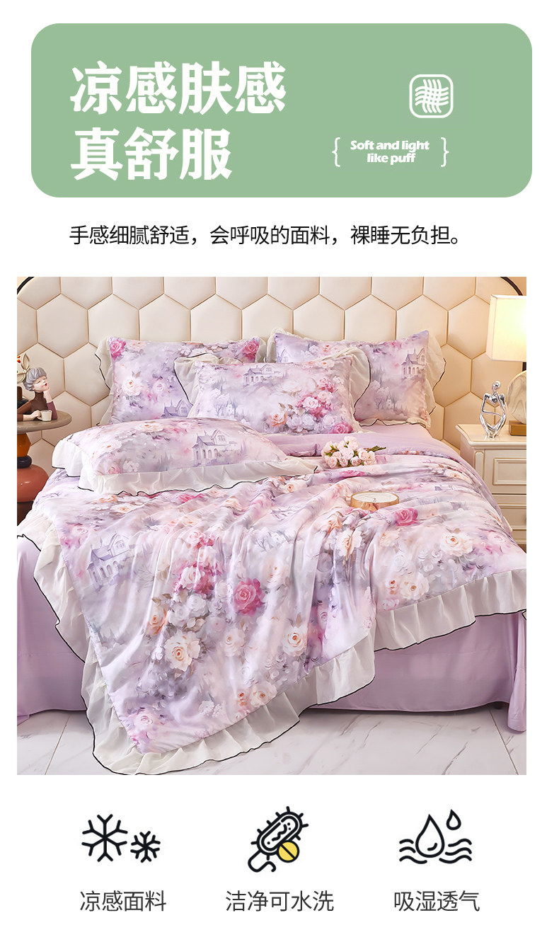 商品名称:凤杰家纺 2025新款玉锦缎夏被四件套 幻影紫