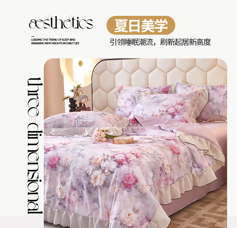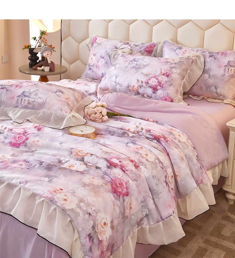 凤杰家纺 2025新款玉锦缎夏被四件套 幻影紫