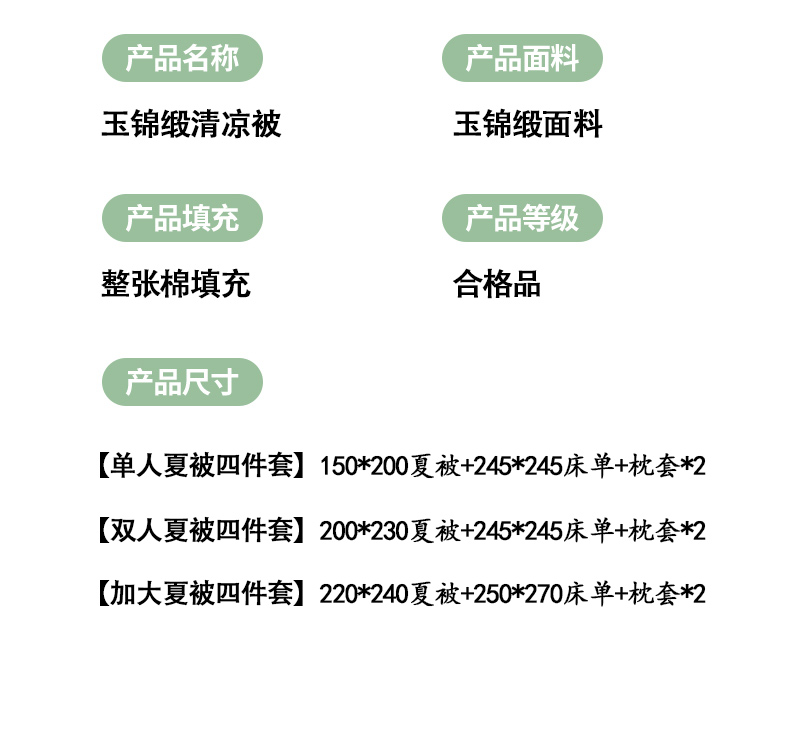 2米:夏被200x230床单245x245枕套2只