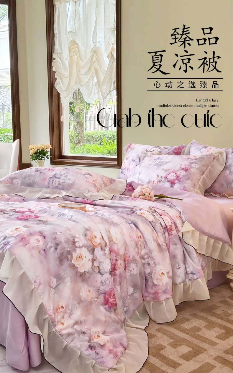(总)凤杰家纺 2025新款玉锦缎夏被四件套,梦丽雅香槟金,芳香蓝,茉莉绿,索莱亚灰,花旦绿,梅花蓝,向阳花开蓝,小乔春秋粉,幻影紫