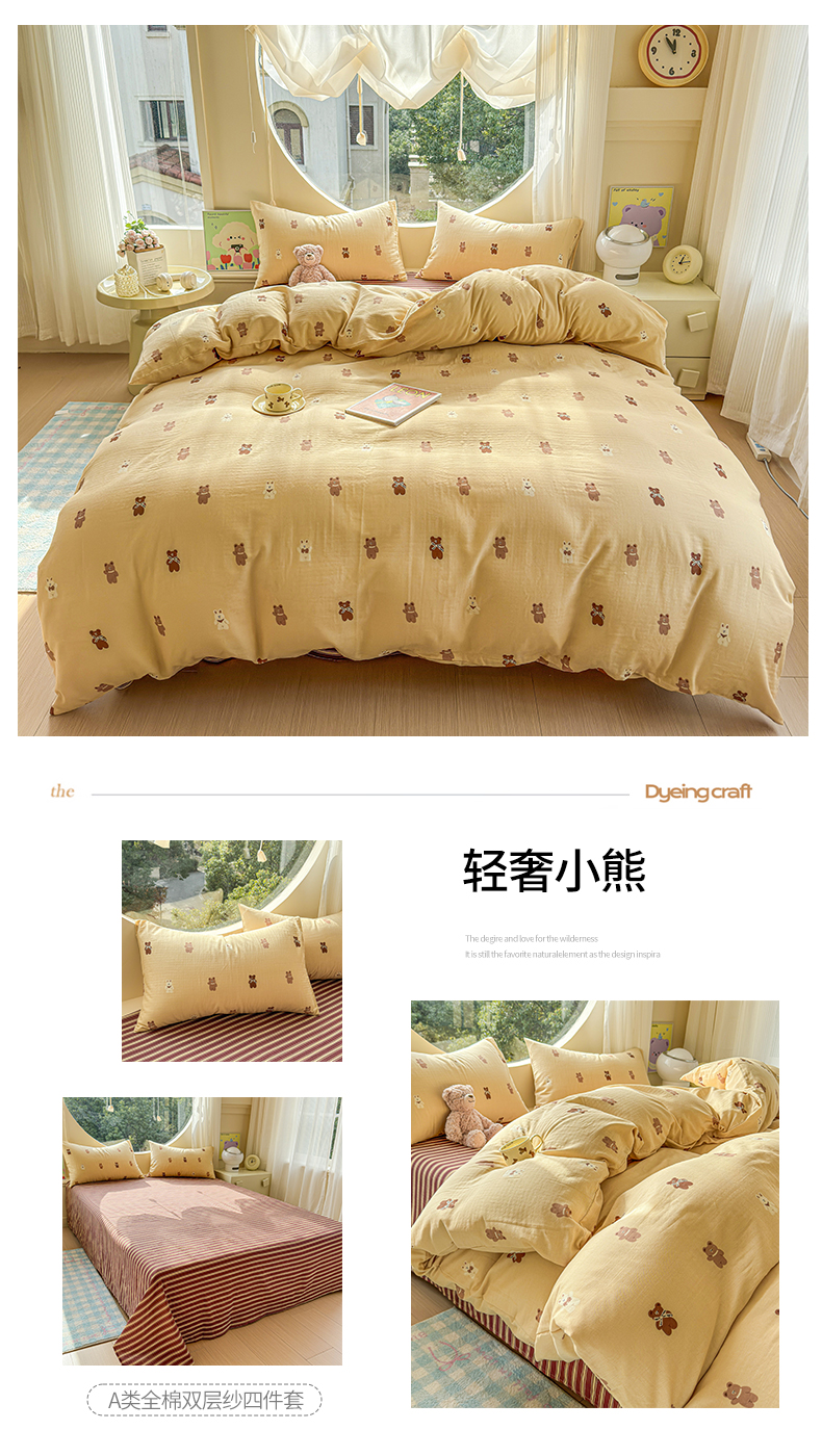 当前位置: 91家纺网 > 商品网购 > 床品套件 > 四件套 > 双层纱四件套 > 感遇家纺 2025新款全棉纯棉千柔双层纱四件套 蓝色小鱼