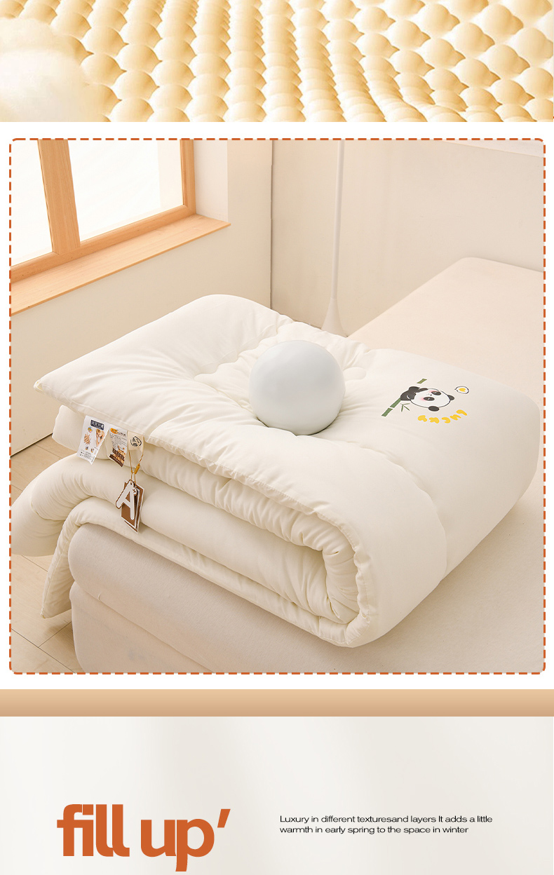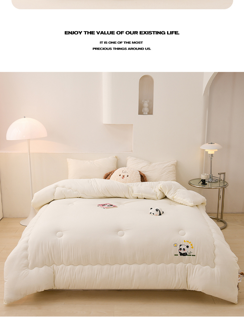 • 91家纺网 家纺一手货源 找家纺 易展家居 2025新款水洗棉大豆被 熊猫-象牙白
