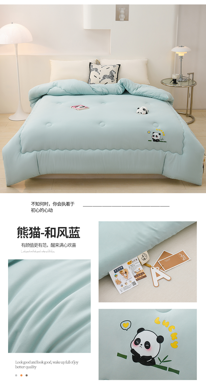 • 91家纺网 家纺一手货源 找家纺 (总)易展家居 2025年新款水洗棉熊猫夏被,熊猫-奶昔白,熊猫-轻绿,熊猫-轻银粉,熊猫-轻银灰