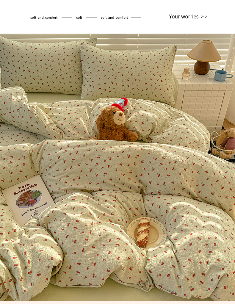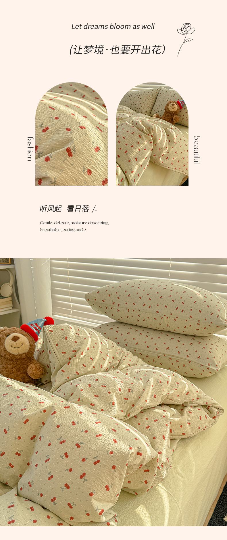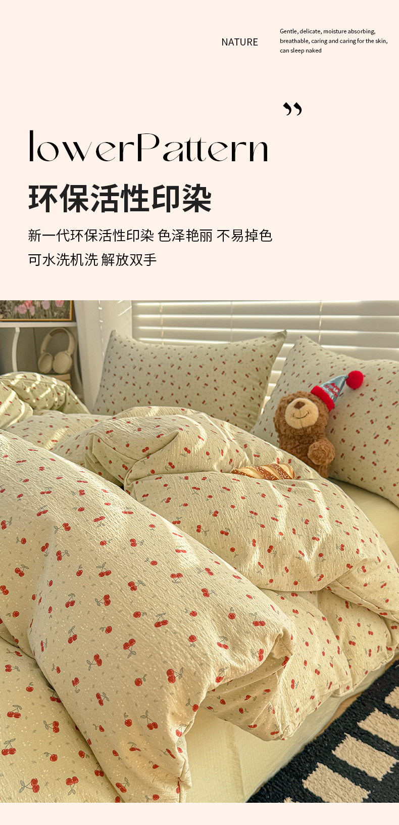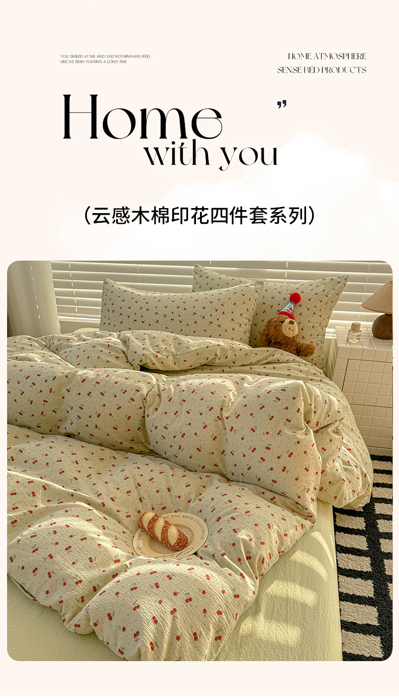 当前位置: 91家纺网 > 商品网购 > 床品套件 > 四件套 > 水洗棉四件套 > 繁花家居 2025学生季第二波木棉水洗棉四件套三件套跑量款 樱桃酱