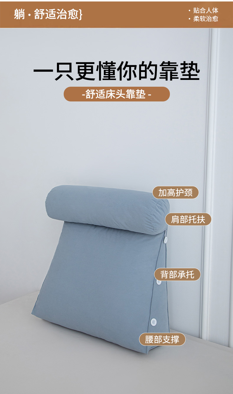 沐沐家纺 2026新款仿棉绒三角靠背带头枕 杏色