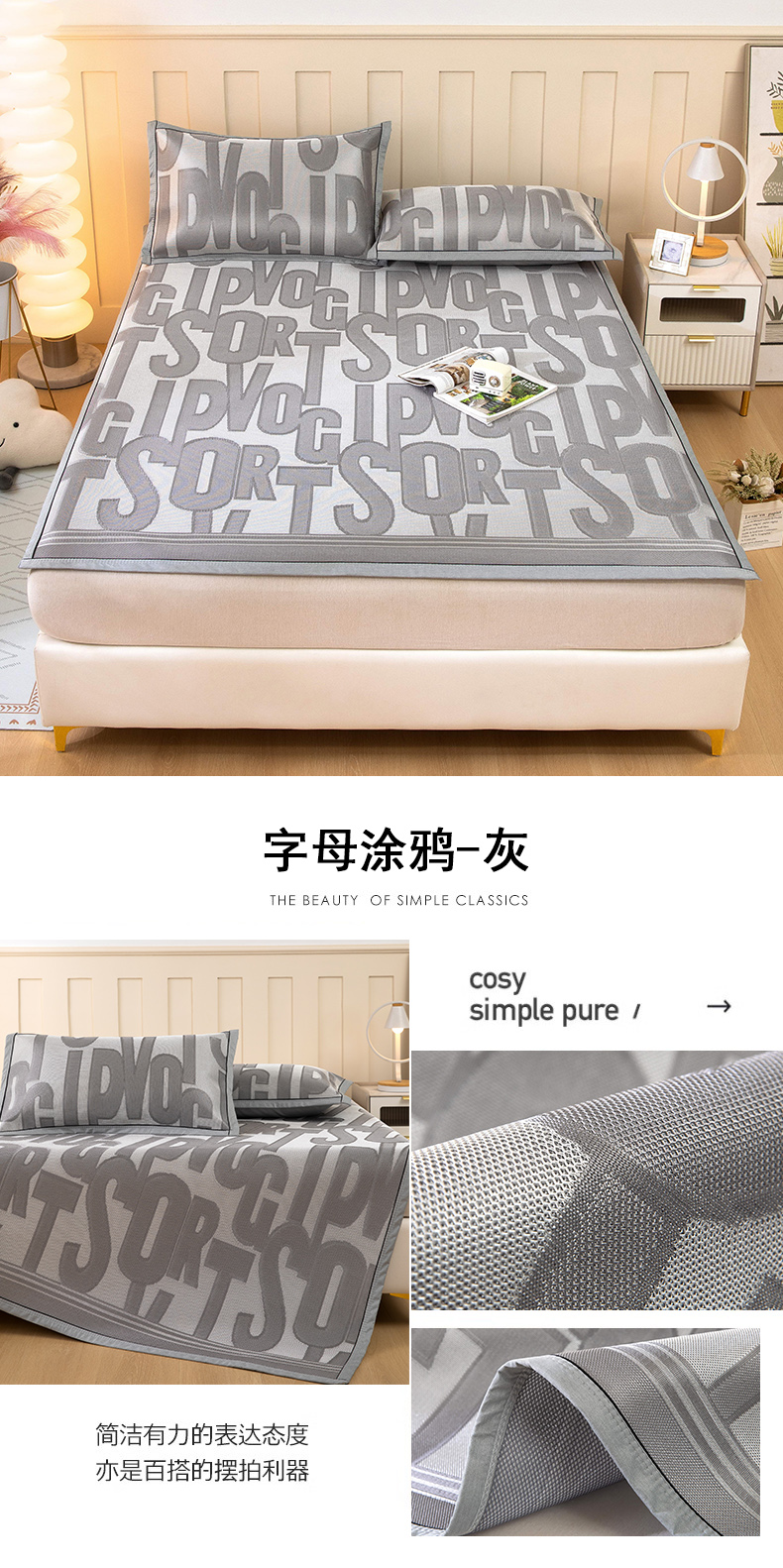 商品名称:莱家富 2025新款A类凉感提花冰丝凉席 快乐小熊-灰