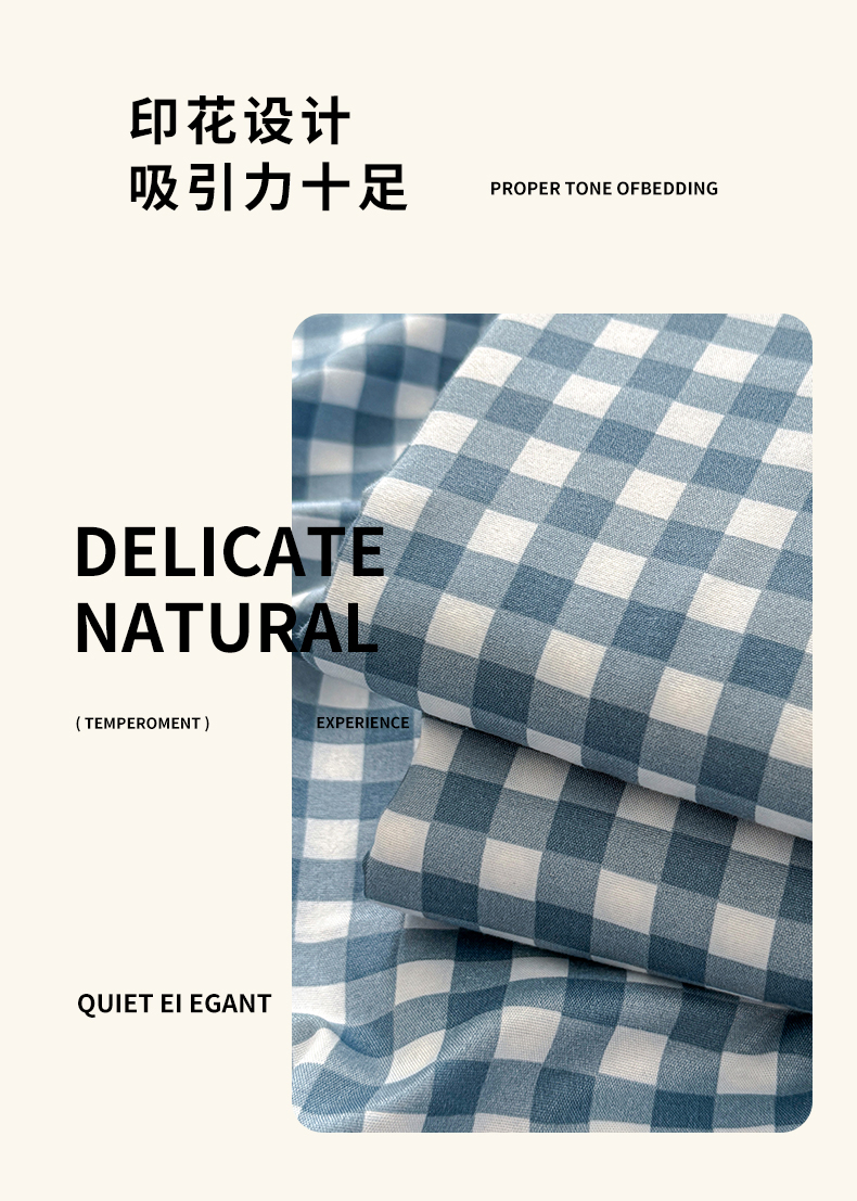 (总)十一家居 2025年秋冬新款A类亲肤云朵水洗棉无印风四件套-叙境系列,柏林蓝格+海青蓝,豆沙小格+粉玉,粉咖小格+粉玉,黑小格+铅灰,蓝咖小格+咖色,蓝小格+海青蓝,糖果小格+海青蓝,桃灰格+卡其