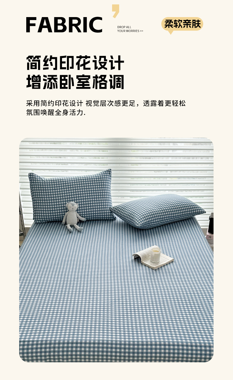 (总)十一家居 2025新款亲肤裸睡云朵棉水洗棉床笠-洛可系列,豆沙小格,粉咖小格,黑小格,蓝调大格,蓝咖小格,蓝小格,糖果小格,桃灰格