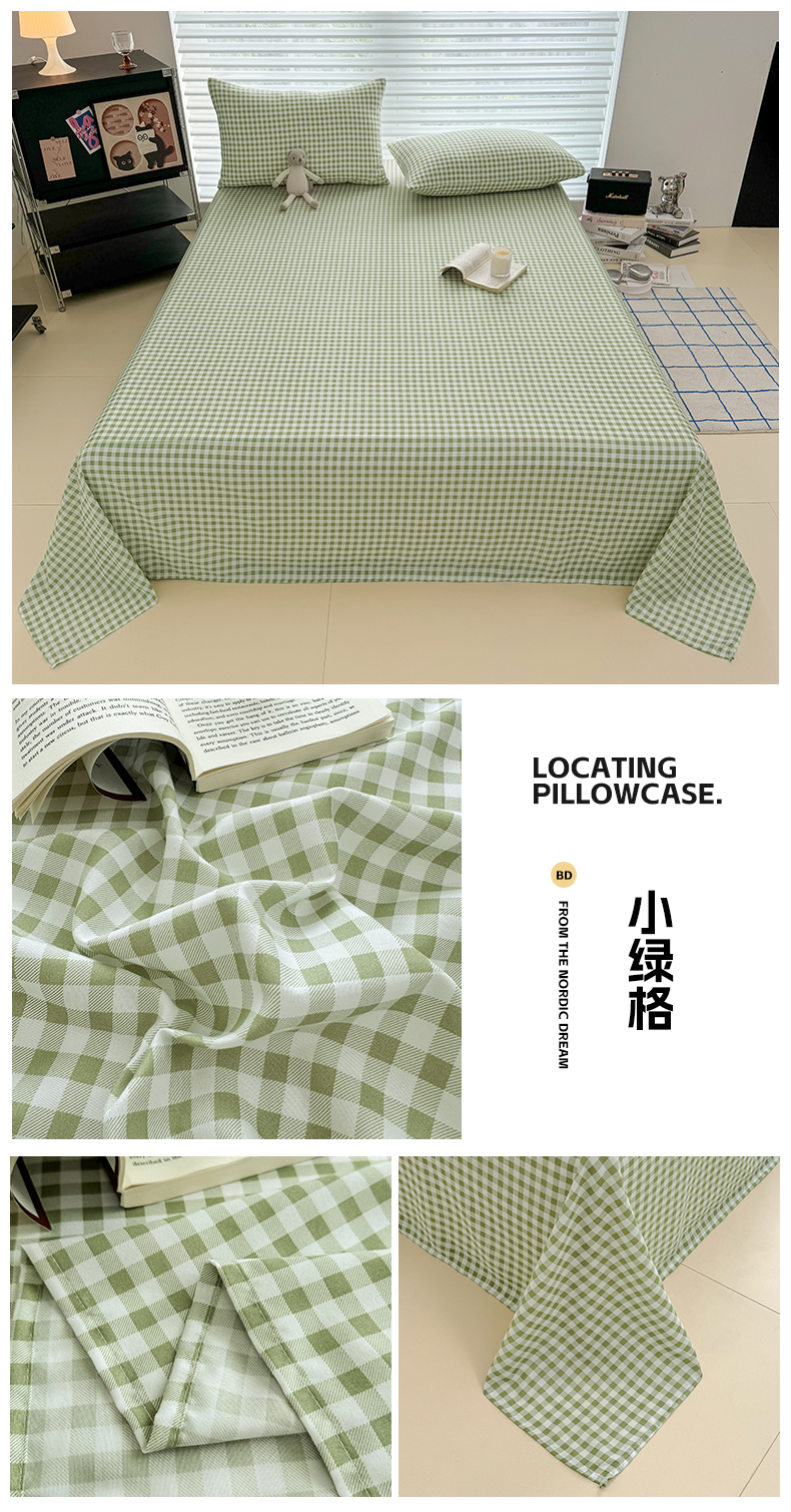 商品名称:十一家居 2025年新款ins无印风A类云朵亲肤水洗棉单床单——眠语系列 小绿格