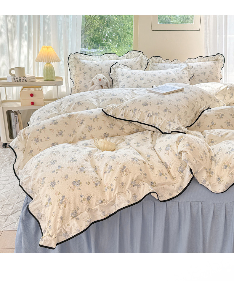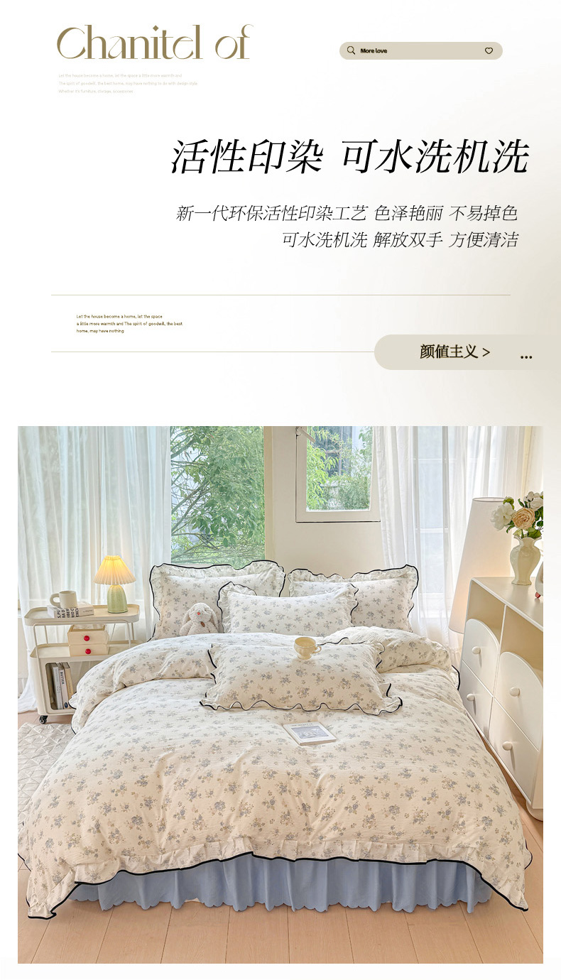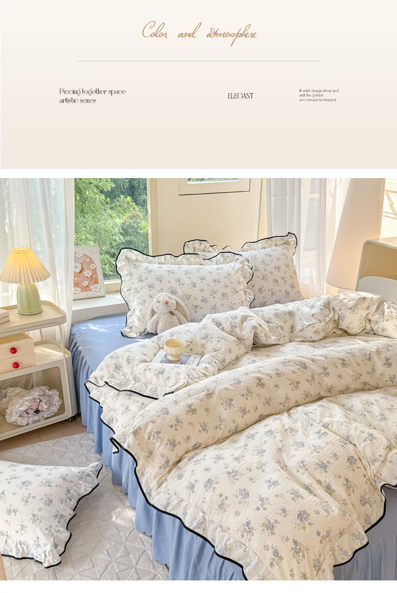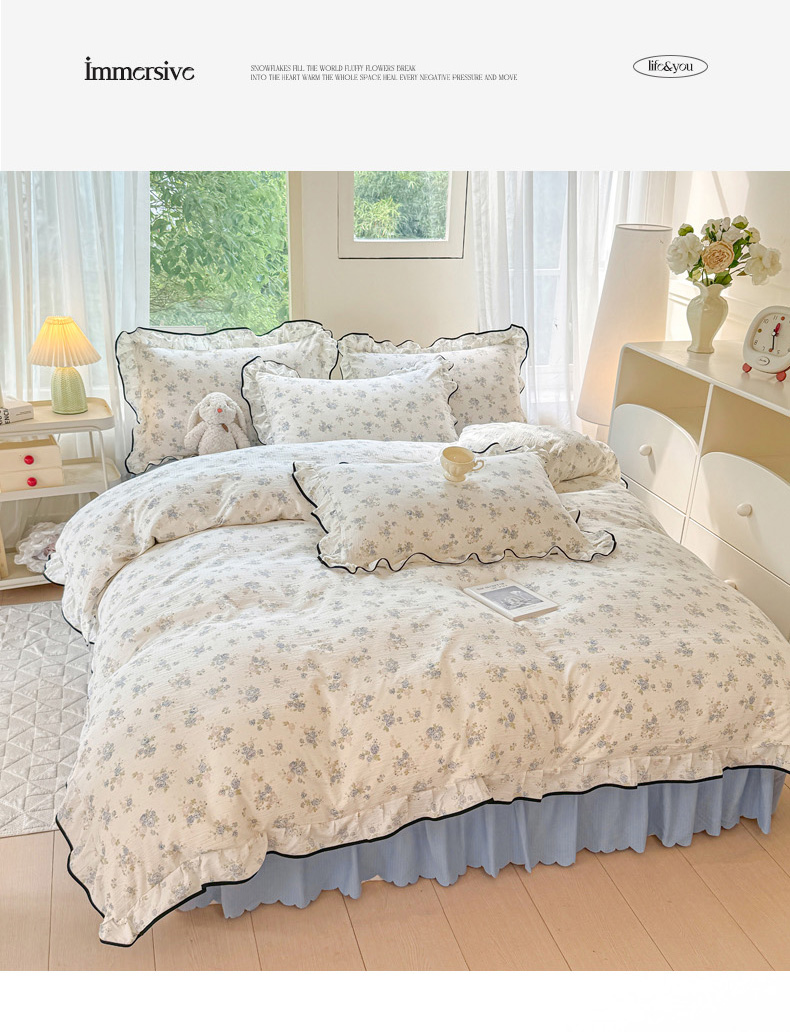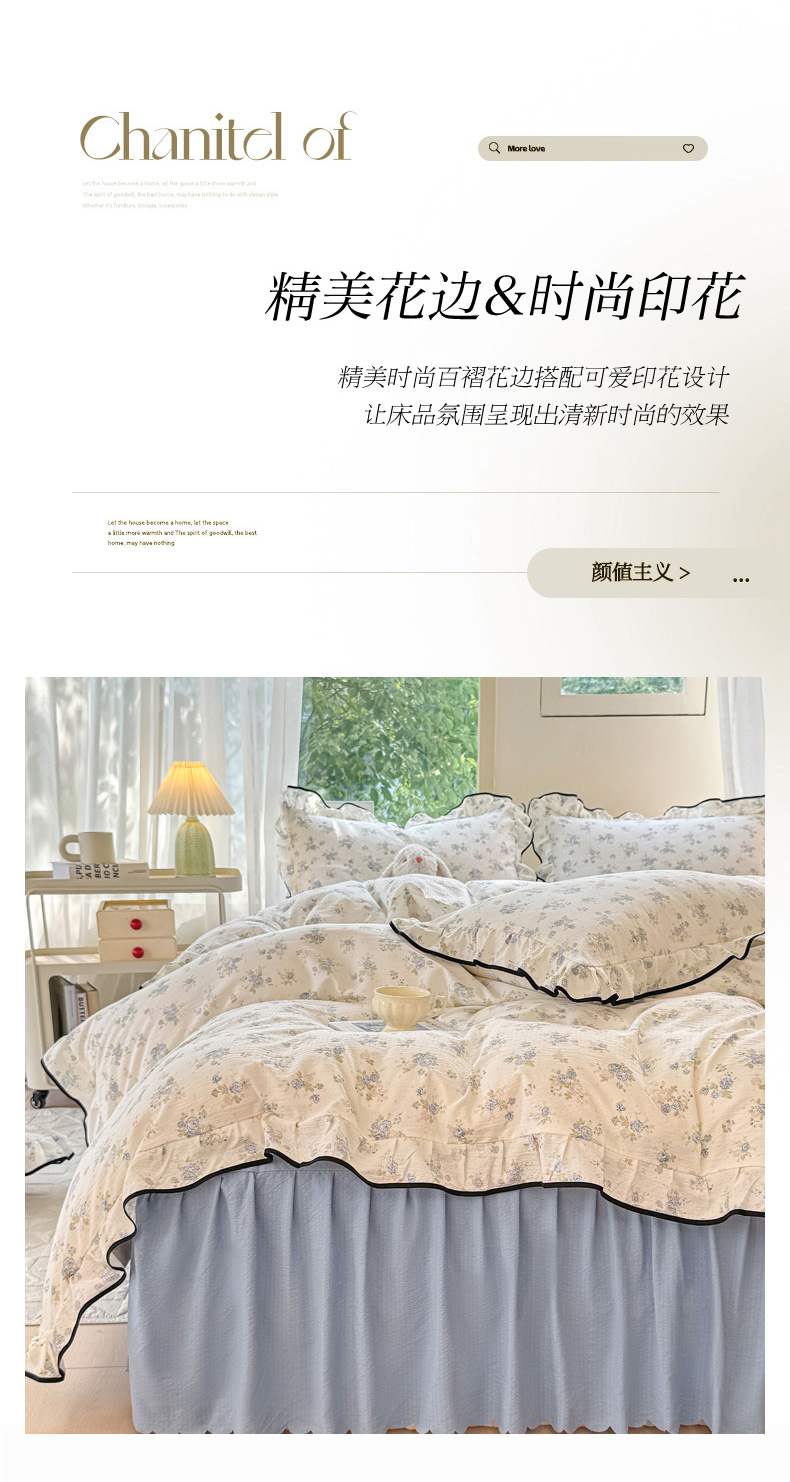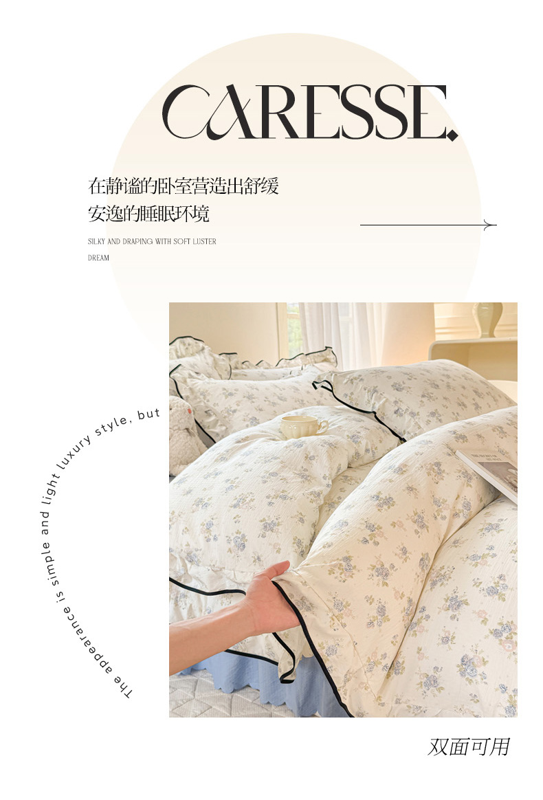 当前位置: 91家纺网 > 商品网购 > 床品套件 > 四件套 > 双层纱四件套 > 上尚居 2025新款简约时尚木棉云感皱皱纱四件套 花季如梦