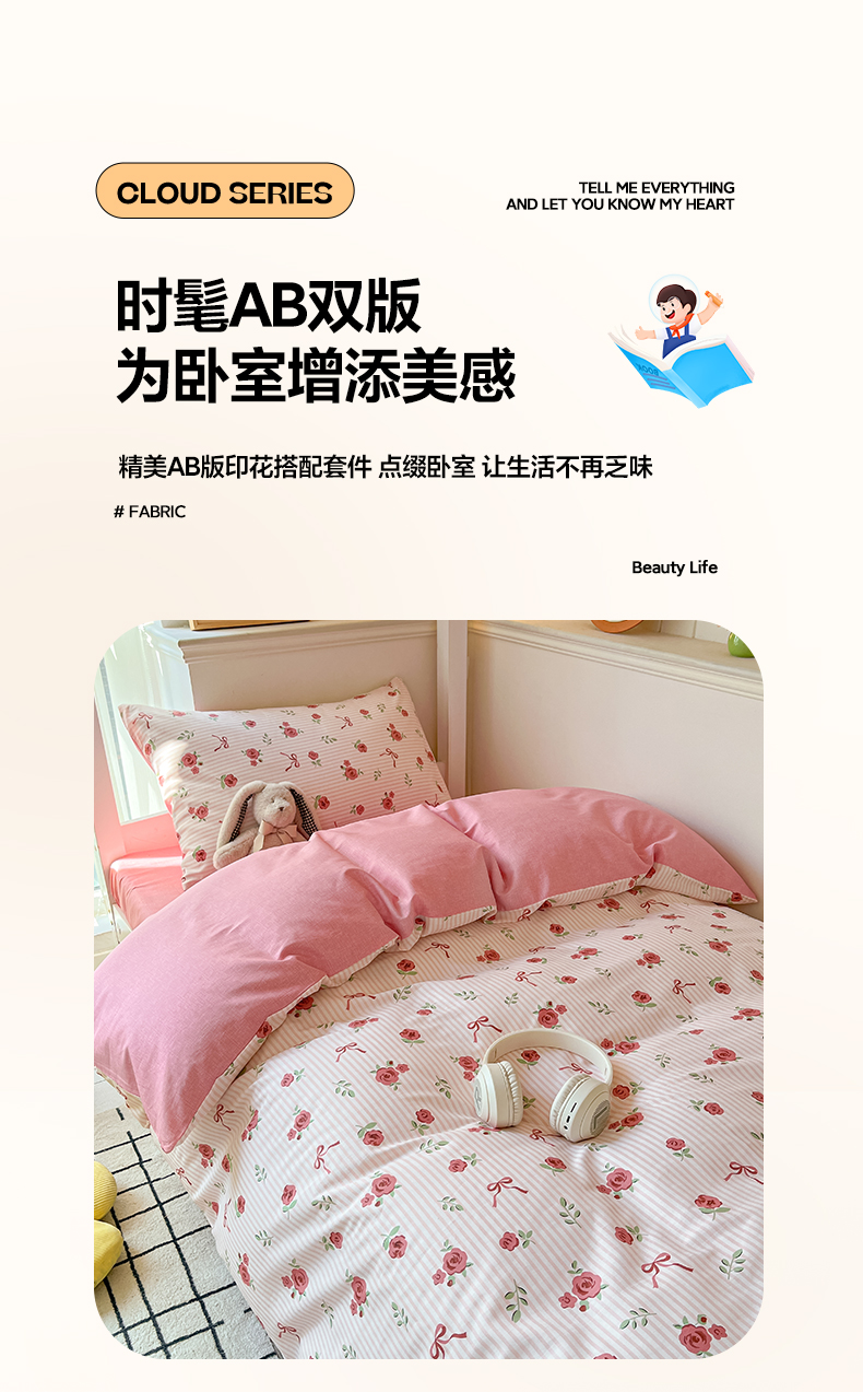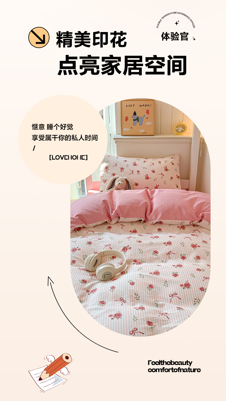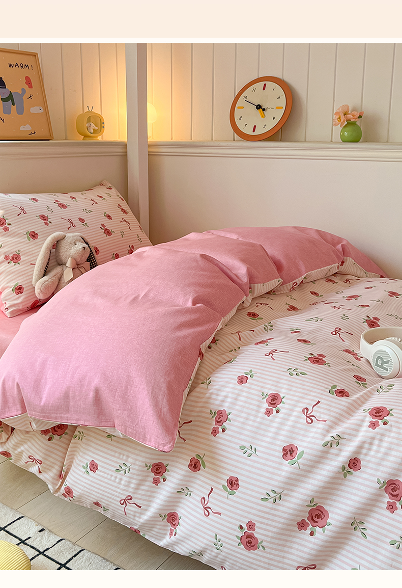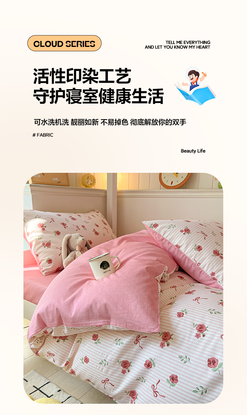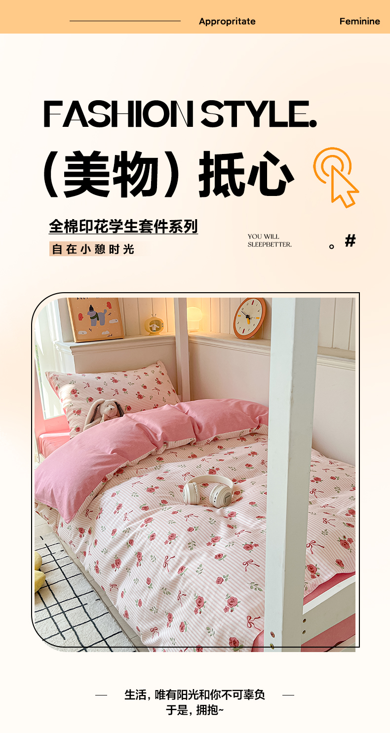 当前位置: 91家纺网 > 商品网购 > 床品套件 > 三件套 > 雅居纺家纺 2025新款全棉纯棉印花系列学生宿舍三四件套上下铺三件套 粉色浪漫
