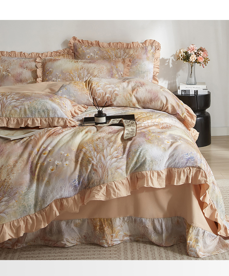 金纱玉纺家纺 2025韩版数码印花加厚100%棉四件套 秋意浓-咖