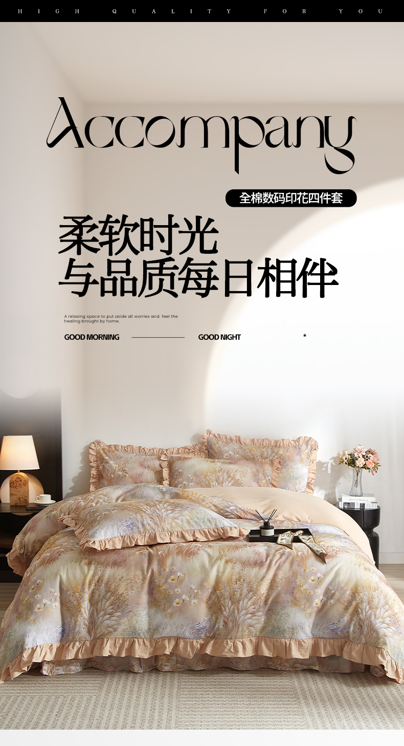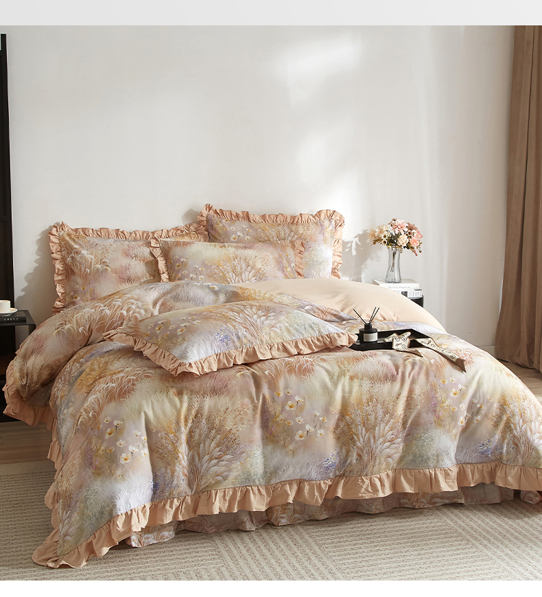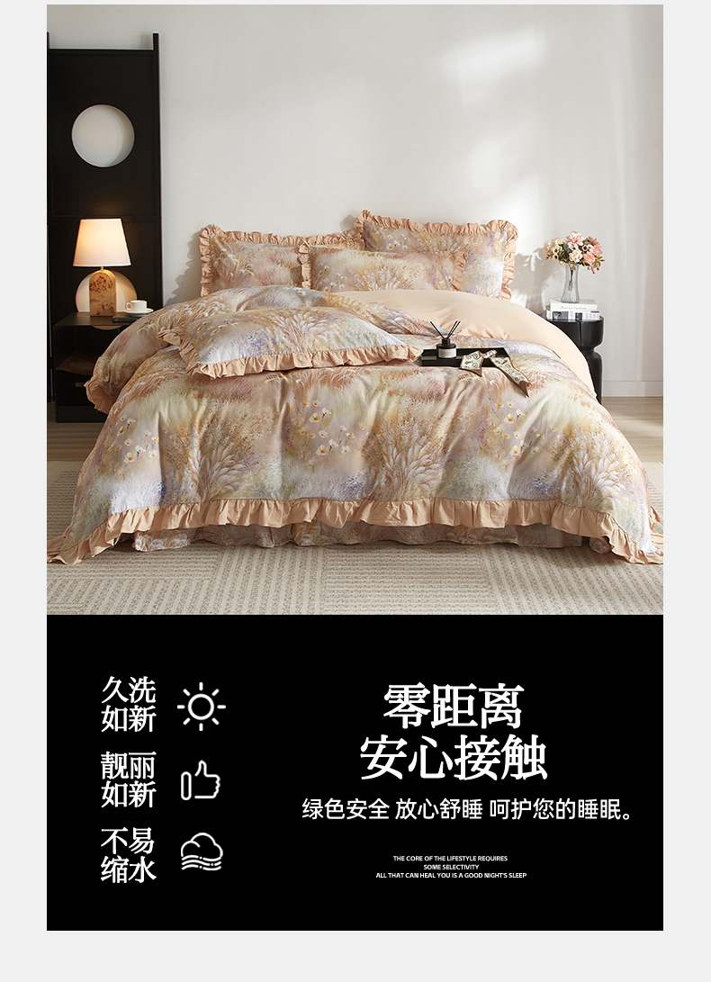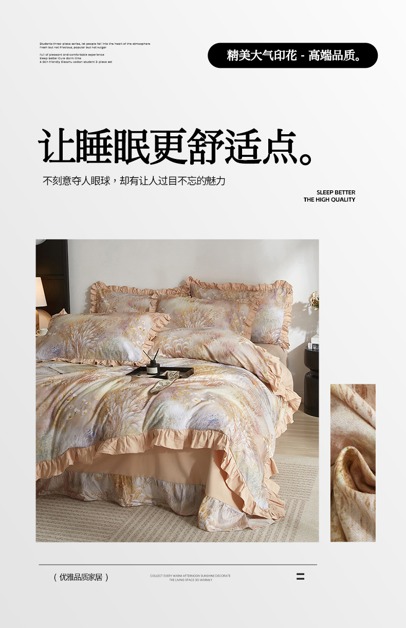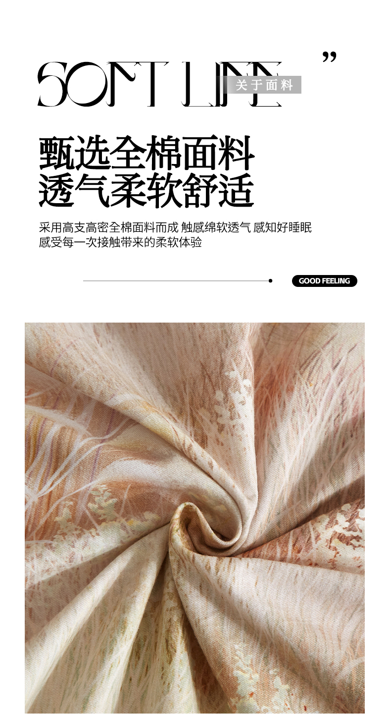 商品名称:金纱玉纺家纺 2025韩版数码印花加厚100%棉四件套 秋意浓-咖