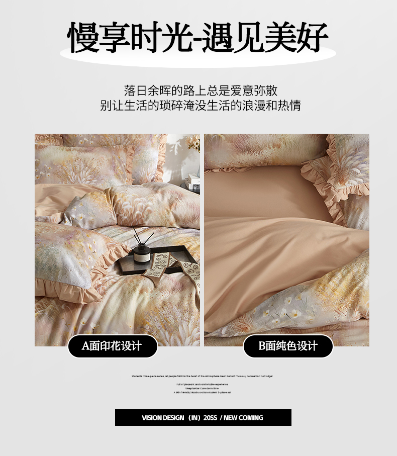 (总)金纱玉纺家纺 2025数码印花100%棉四件套,半城烟沙-兰,草长莺飞,海瑟薇-米,花韵倾城-咖,蜜恋-粉,暮然回首-咖,莎莉亚-兰,施华洛-咖,雾里看花-米,仙本娜-兰,辉煌一生,甜心兔-咖,爱心发射-蓝,经典爱恋-棕,漫影条-豆沙,飞花-彐,华美-绿,秋意浓-彐,听风冷雨-粉,忘影-灰,新世纪-粉,新世纪-兰,雨梦-紫,枕月之梦-紫