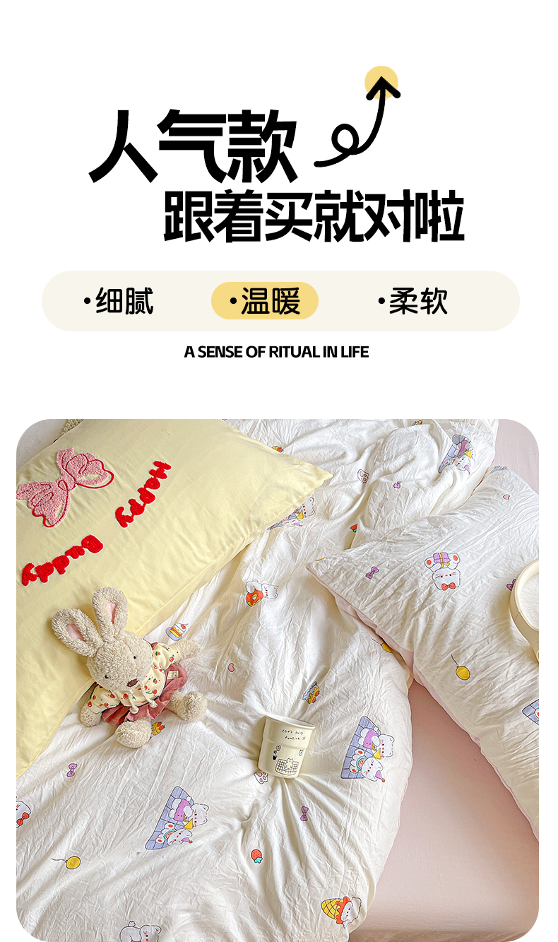 当前位置: 91家纺网 > 商品网购 > 床品套件 > 四件套 > 水洗棉四件套 > 布可家纺 2025新款水洗棉时尚印花四件套 蓝枝兔