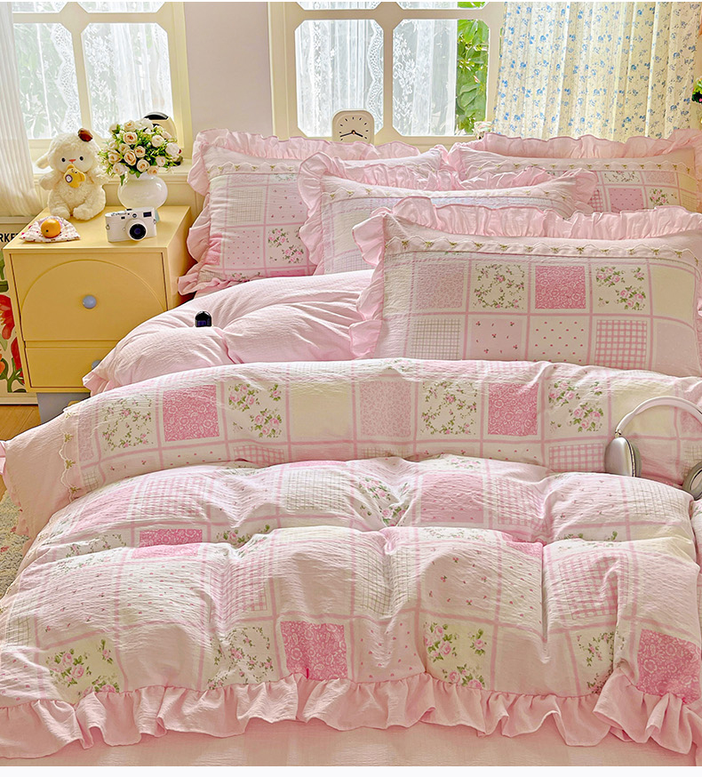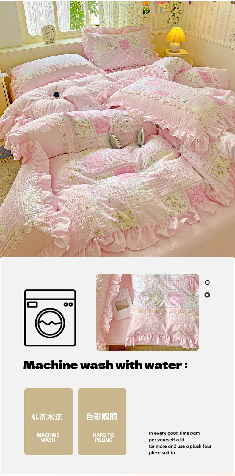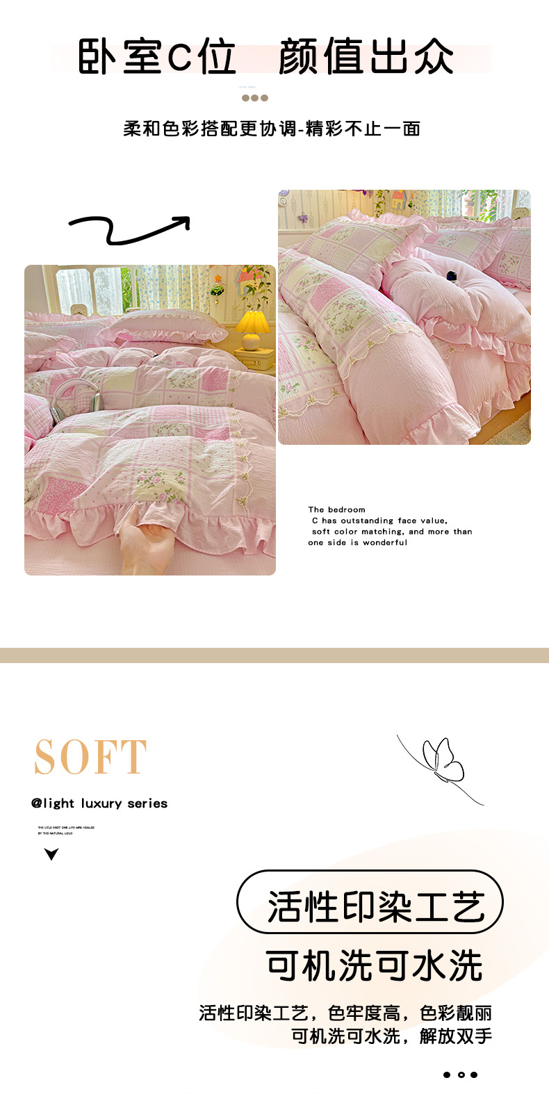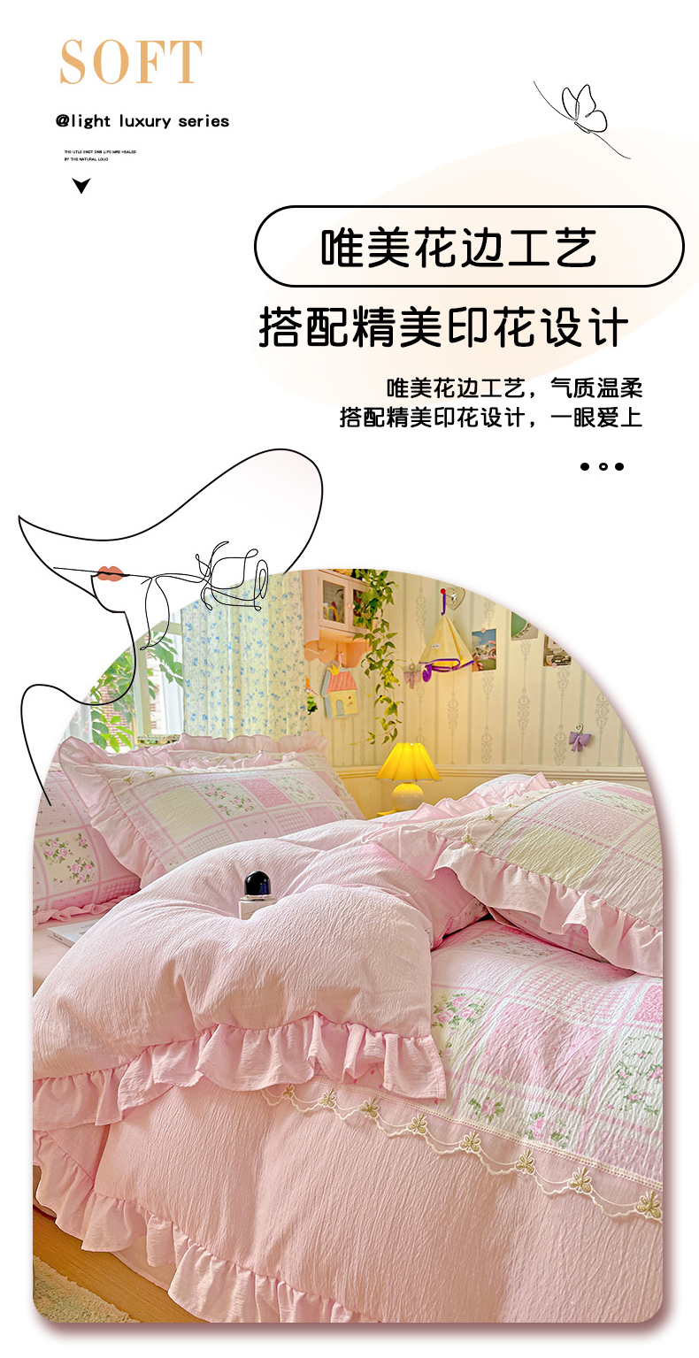 (总)娜娜 2026新款A类云朵锦花边四件套,动物世界-雾蓝,满天星-豆沙,满天星-浅紫,小雏菊-浅绿,小雏菊-玉色,樱花粉