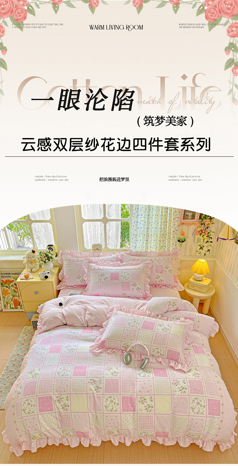 娜娜 2025新款云感双层纱四件套 博洛花集