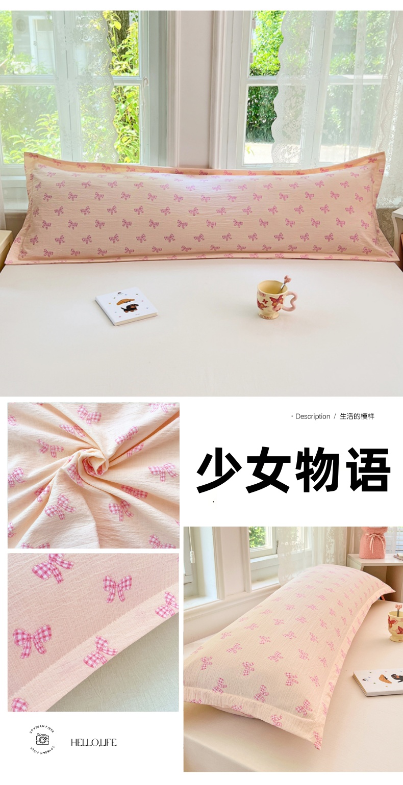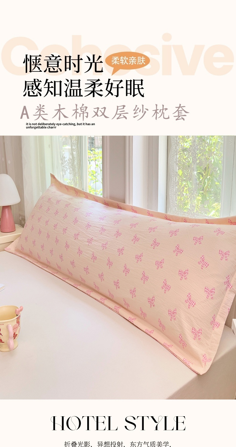 商品名称:梦舒羽 2025新款云感双层纱印花双人枕套情侣1.5m枕芯套1.8床枕头 少女物语