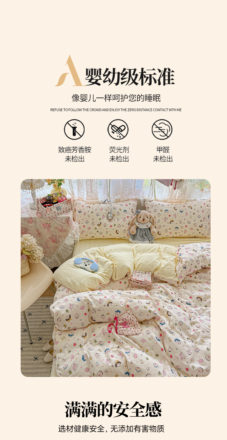 当前位置: 91家纺网 > 商品网购 > 床品套件 > 四件套 > 水洗棉四件套 > 盼季家纺 2025新款A类水洗棉印花双拼床上用品四件套学生宿舍床笠三件套 简单款-粉白波点