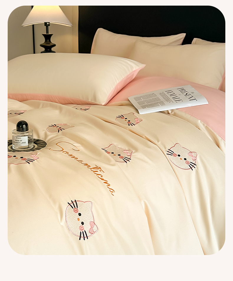 当前位置: 91家纺网 > 商品网购 > 床品套件 > 四件套 > 水洗棉四件套 > 小久久(小九九) 2025新款亲肤水洗棉刺绣满绣四件套 可爱猫-奶昔白+奶油粉