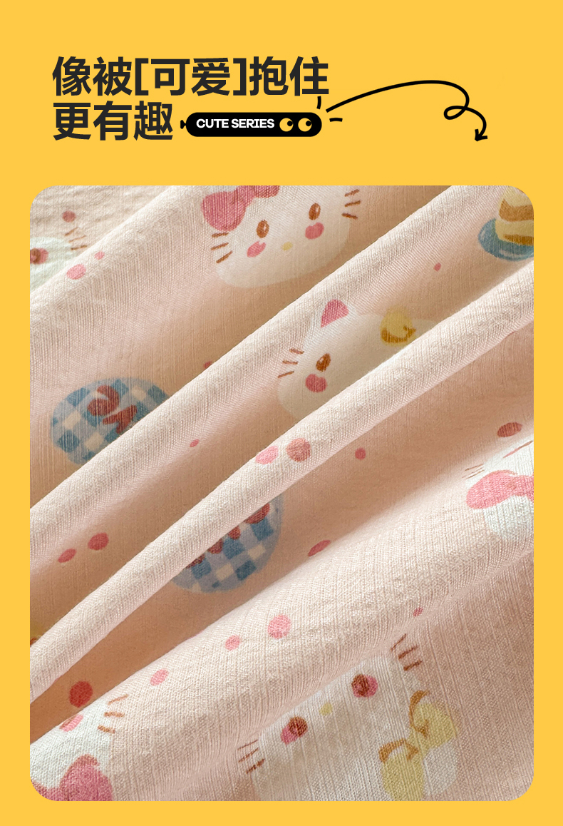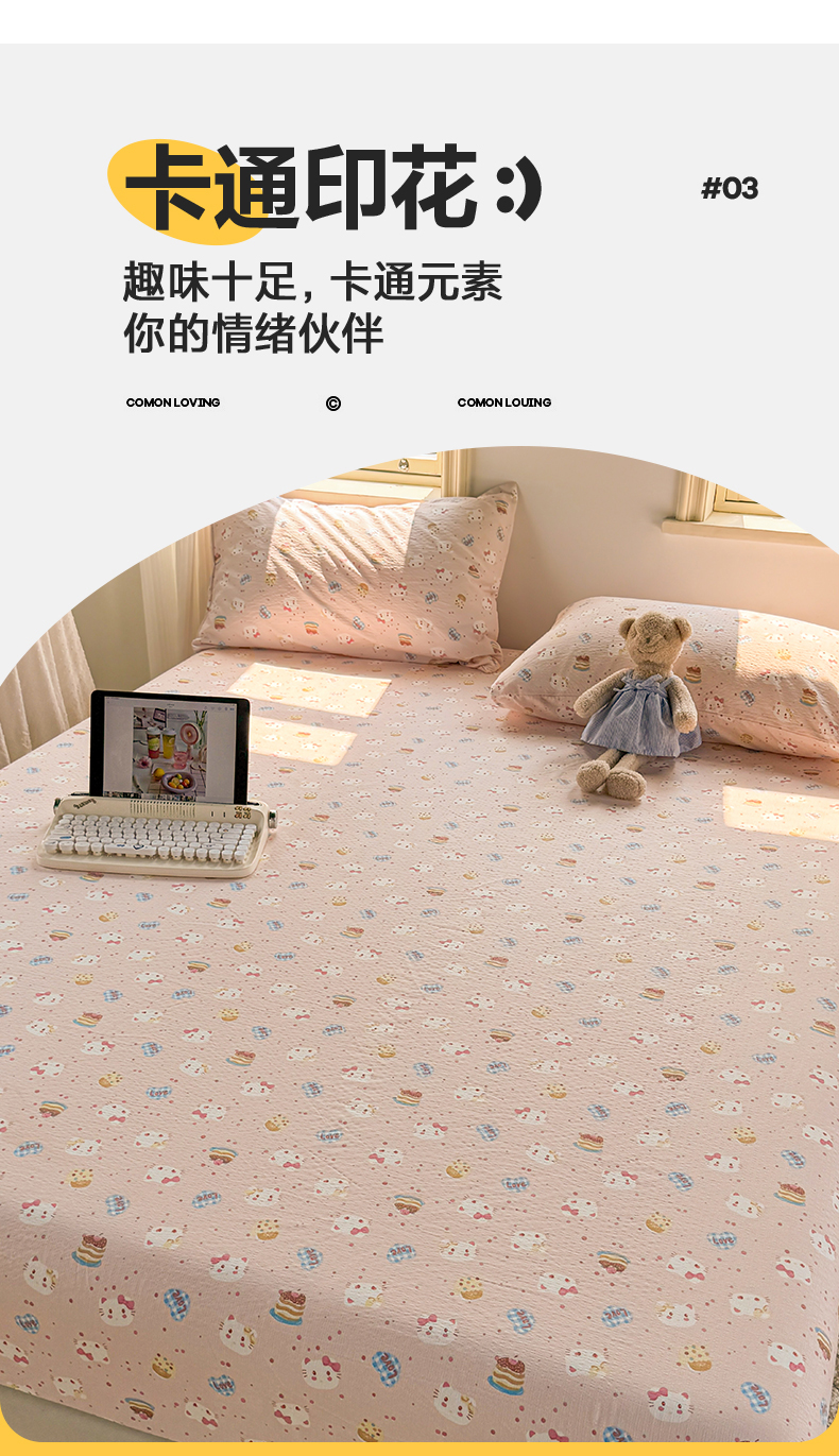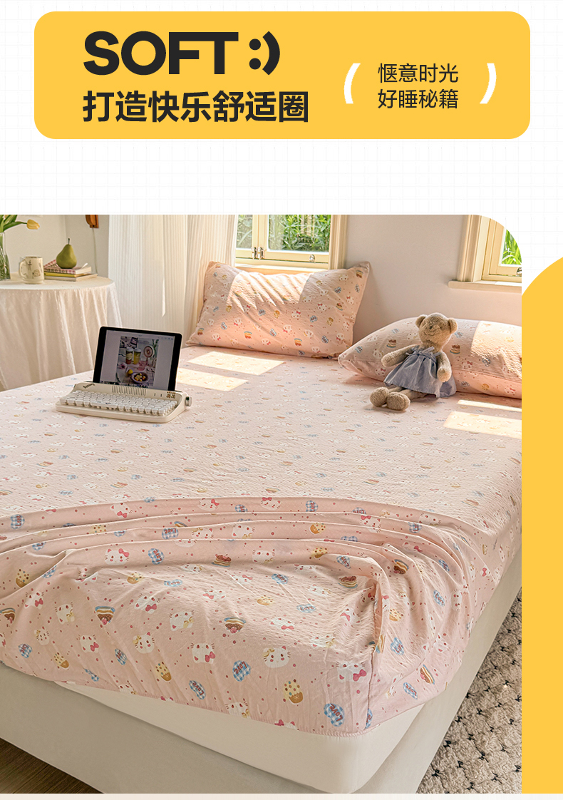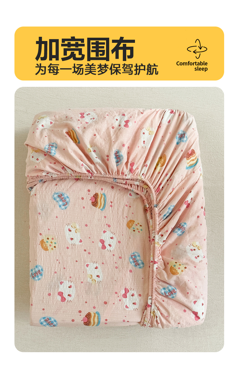 • 91家纺网 家纺一手货源 找家纺 多品家纺 2025新款超柔云感双层纱水洗棉单品床笠 布丁猫