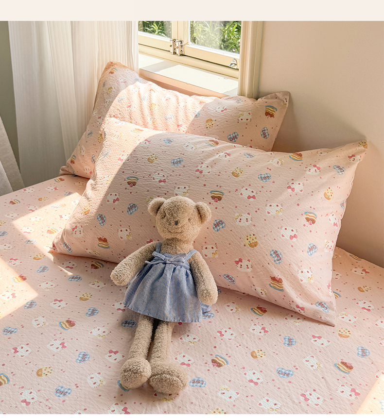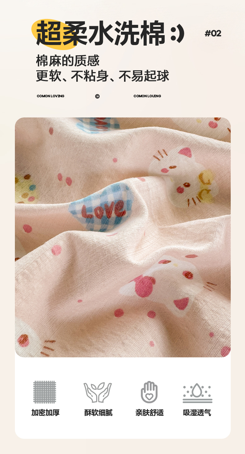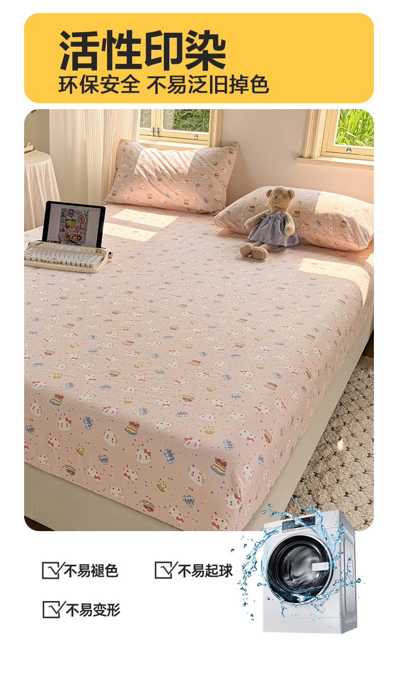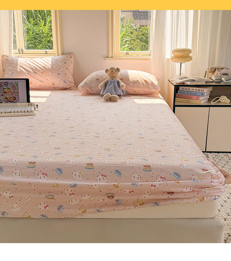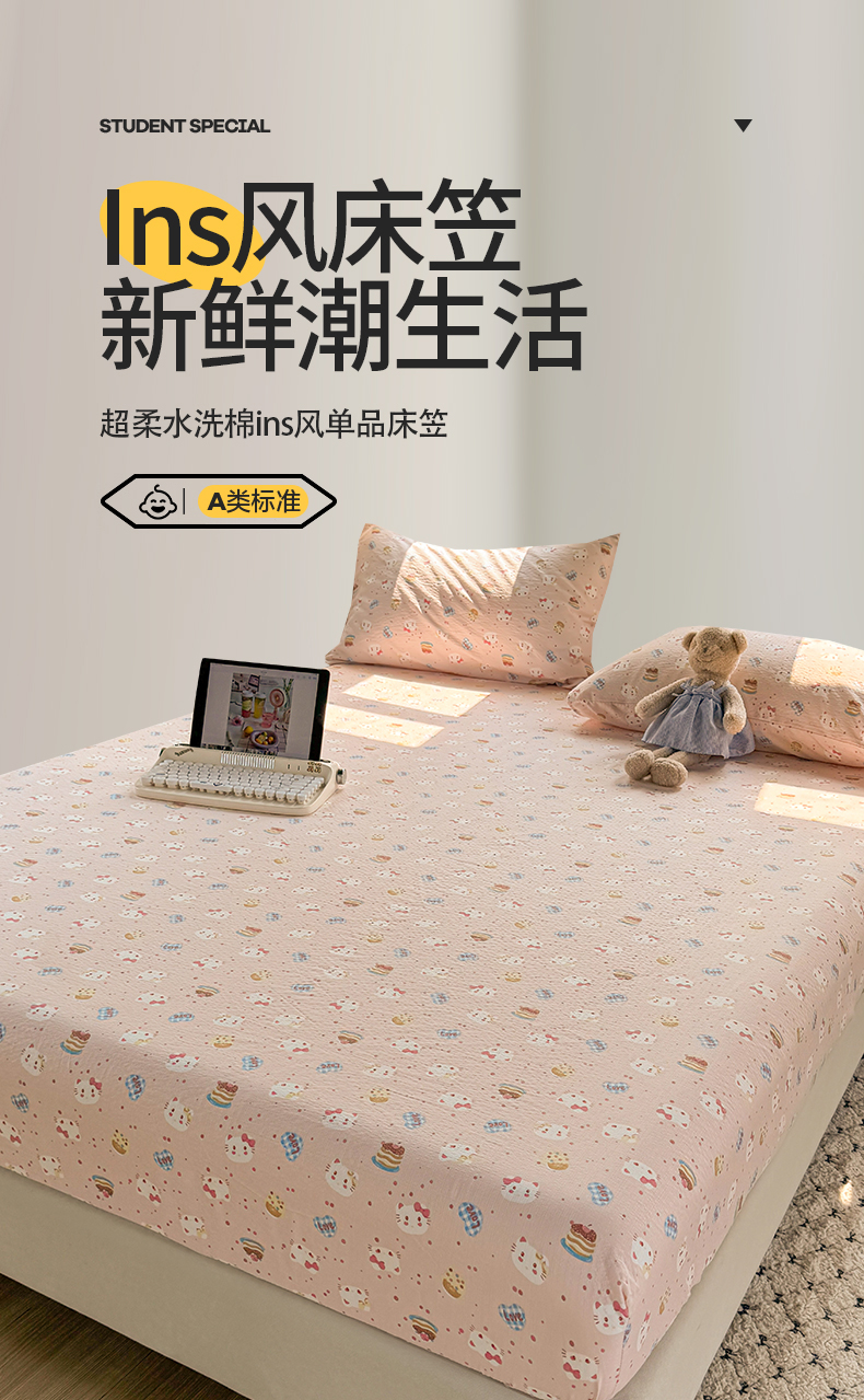 • 91家纺网 家纺一手货源 找家纺 多品家纺 2025新款超柔云感双层纱水洗棉单品床笠 布丁猫