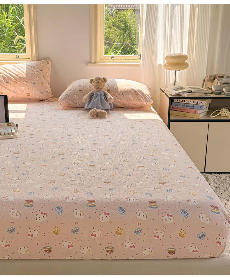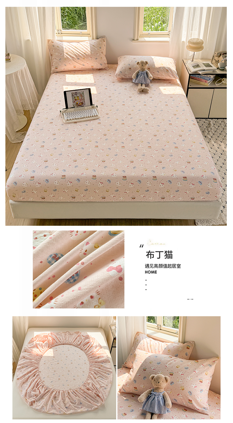 多品家纺 2025新款超柔云感双层纱水洗棉单品床笠 布丁猫