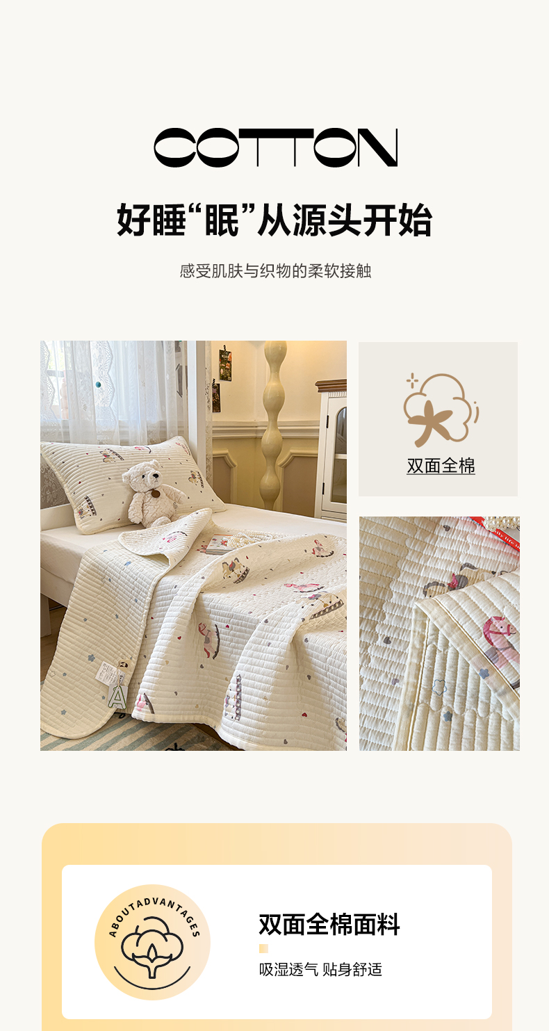 (总)舒居家纺 2025新款学生高温酵素砂洗双面全棉纯棉床盖,爱心木马,比利小熊,格子樱桃,花季少女,花开无声咖,花睿--青草绿,洛林--粉,迷彩花兔,俏皮狗,兔兔乐园,小汽车