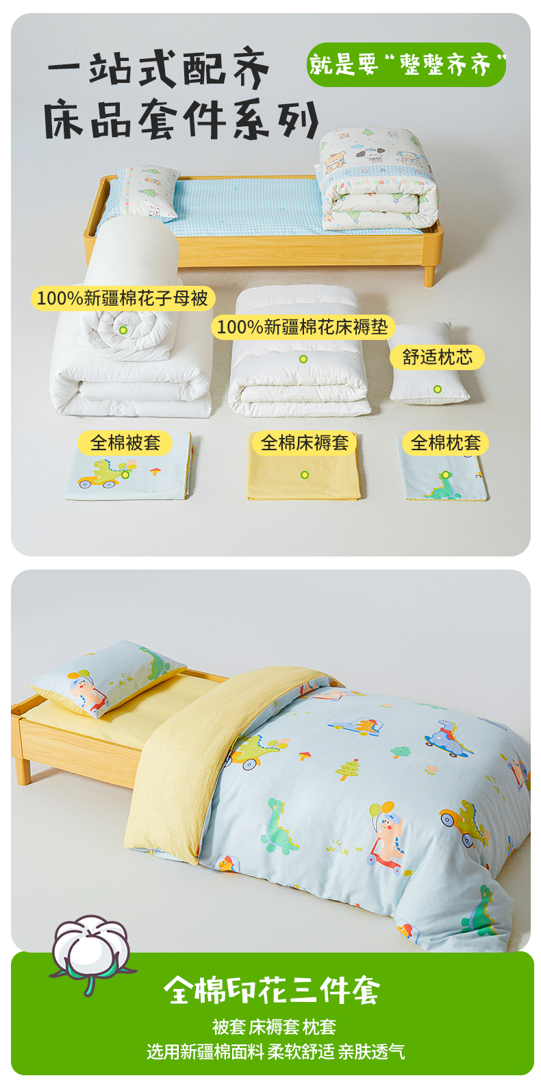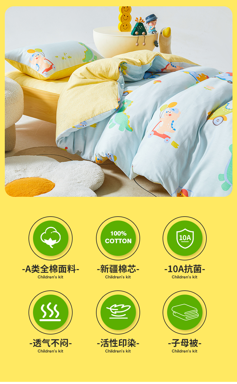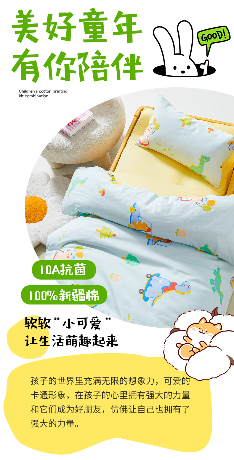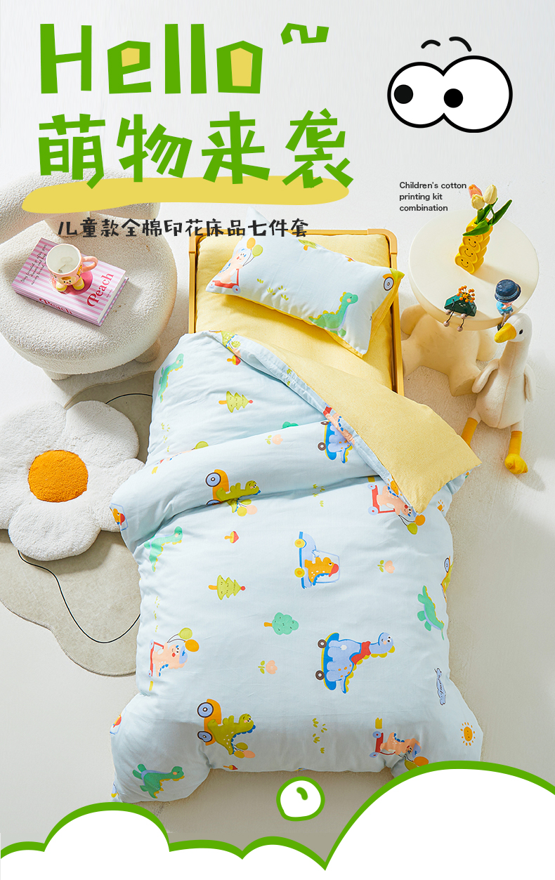 当前位置: 91家纺网 > 商品网购 > 床品套件 > 六件套 > 西域种棉人·千百笠 2025新款100%全棉幼儿园被子三件套被套纯棉儿童六件套宝宝入园专用被套被褥含芯七件套 淘气恐龙