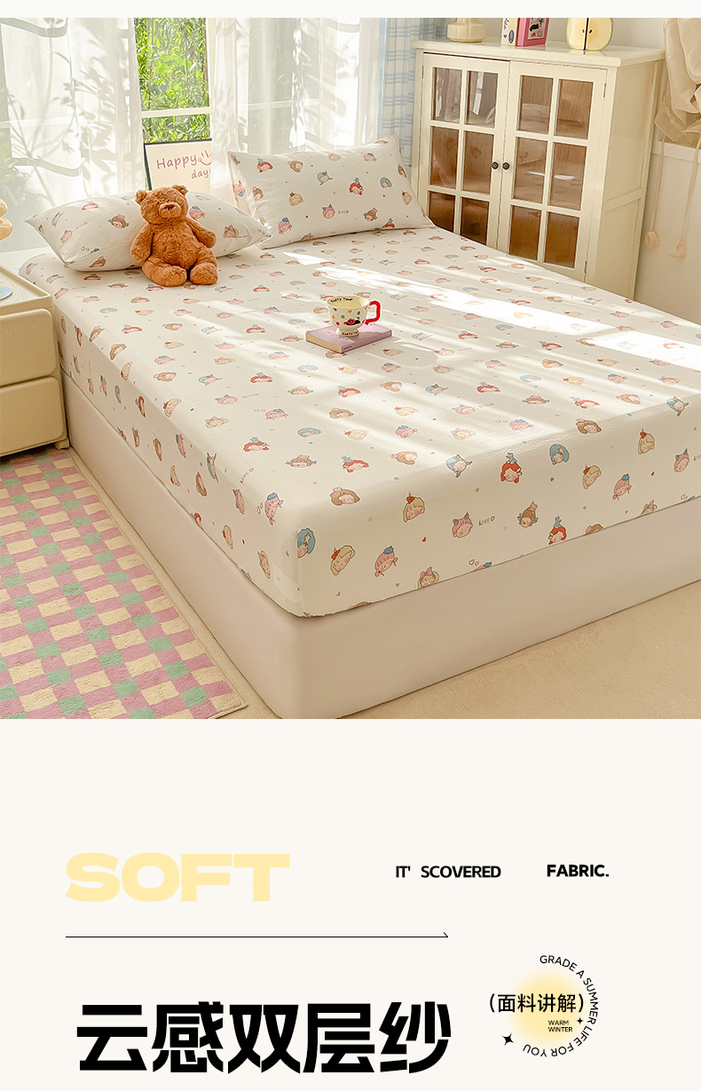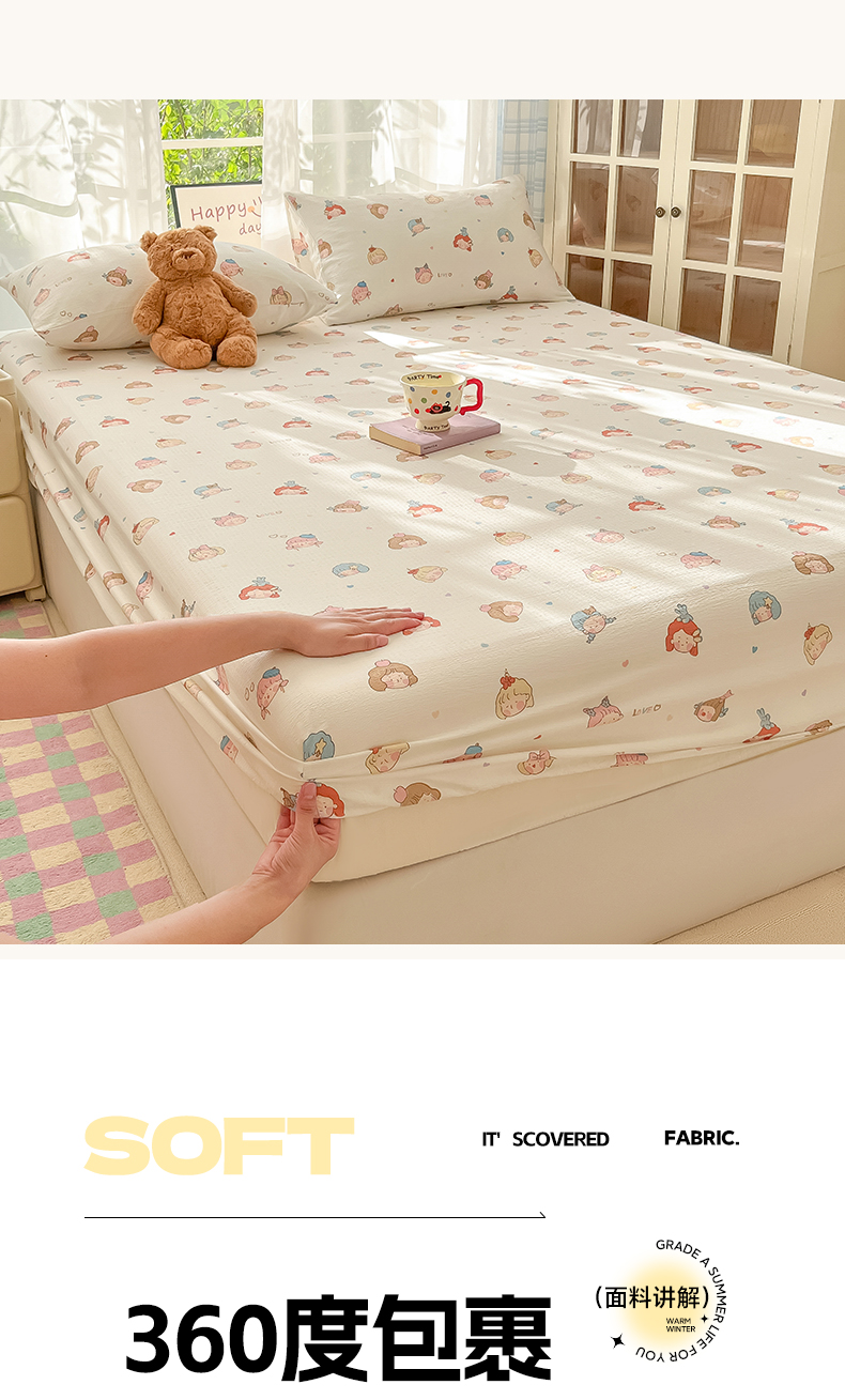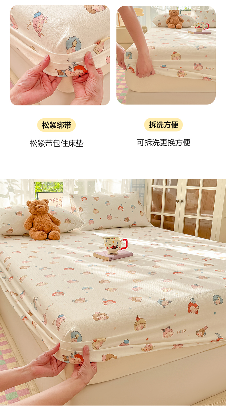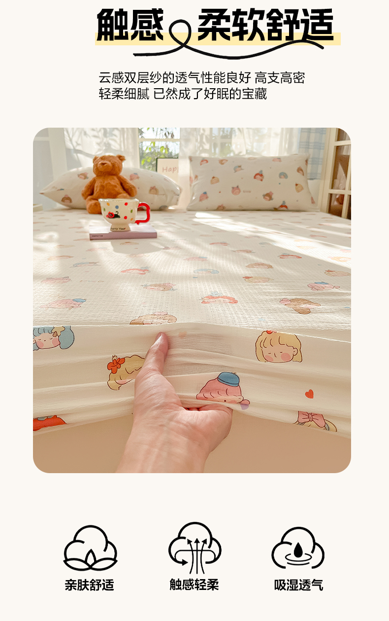 • 91家纺网 家纺一手货源 找家纺 韩巢家纺 2025新款卡通双层纱床笠单品床笠床笠单件热销款防滑床单床套枕套三件套 童话女孩