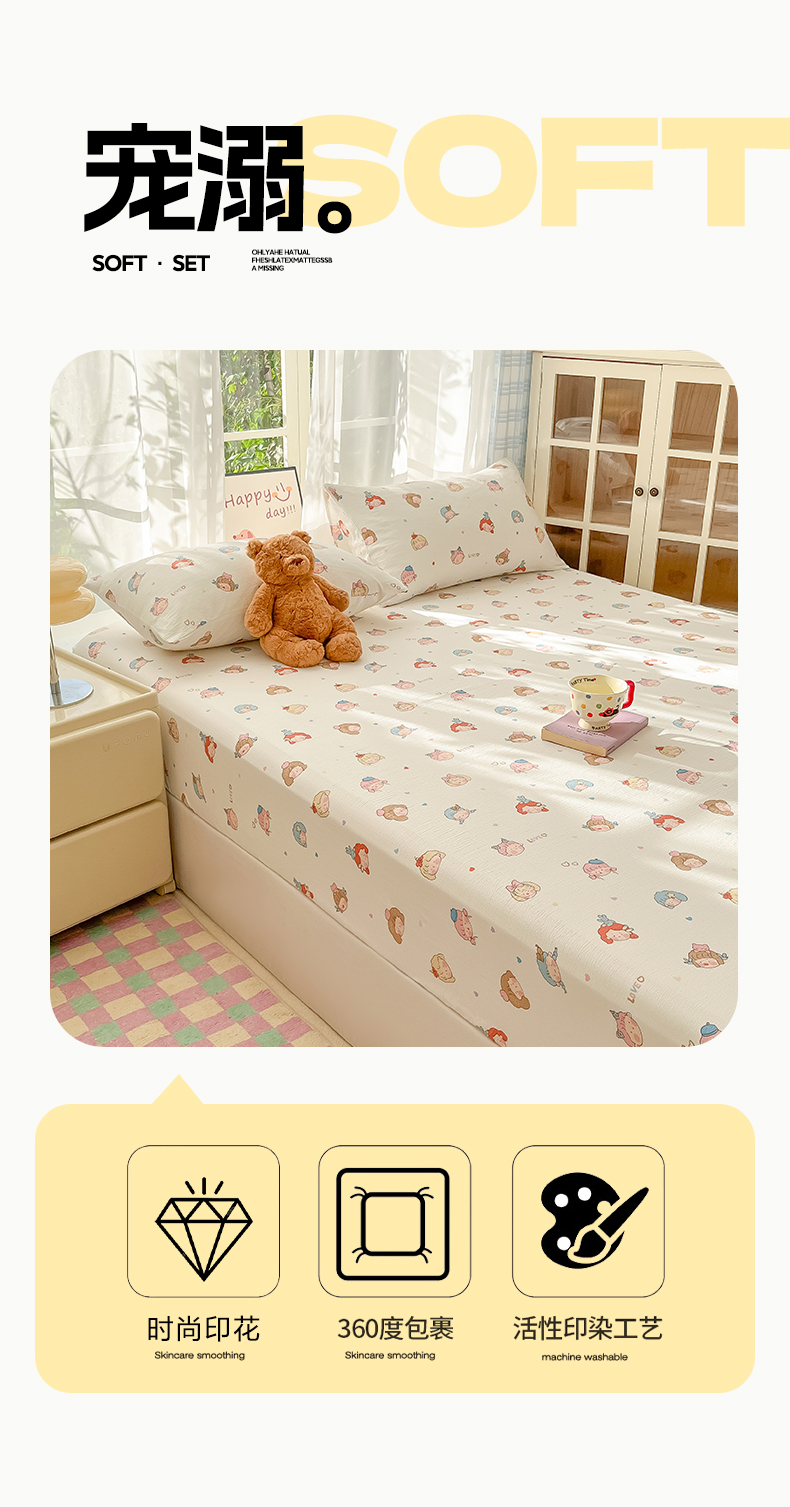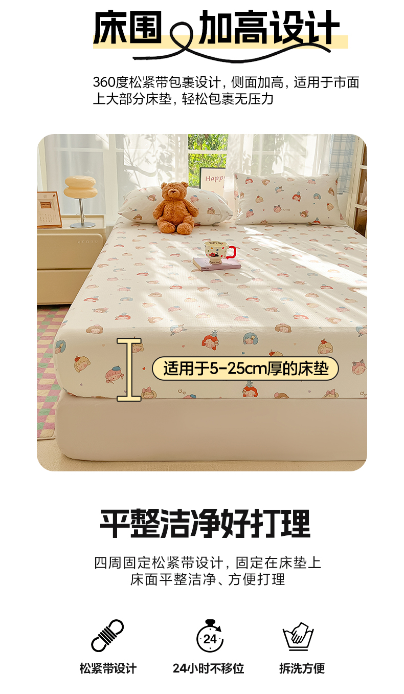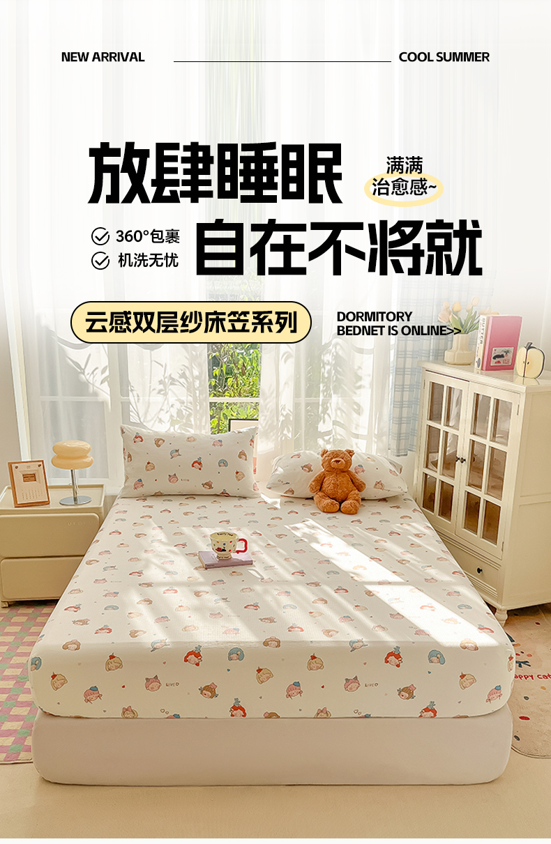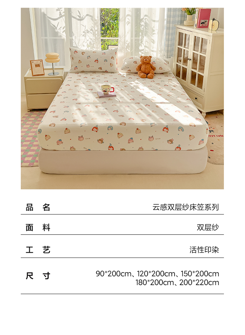• 91家纺网 家纺一手货源 找家纺 韩巢家纺 2025新款卡通双层纱床笠单品床笠床笠单件热销款防滑床单床套枕套三件套 童话女孩