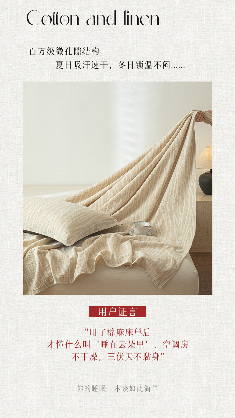• 91家纺网 家纺一手货源 找家纺 眠博士 2025新款A类棉麻提花床单单床单床单单件 棉麻床单-树纹