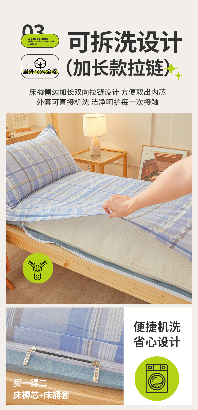 当前位置: 91家纺网 > 商品网购 > 床垫/床褥 > 普通床垫 > 西域种棉人·千百笠 2025新款A类100%棉里外全棉新疆棉花床垫宿舍学生单人床褥垫家用卧室垫被褥子 韵蓝格