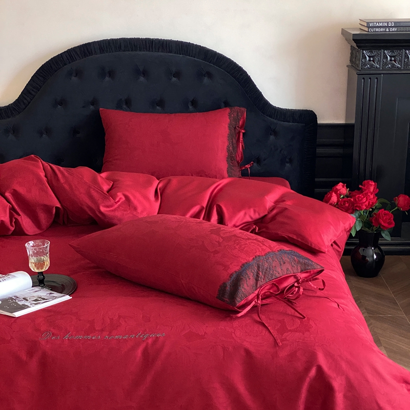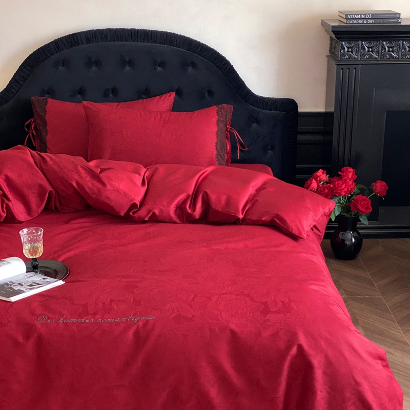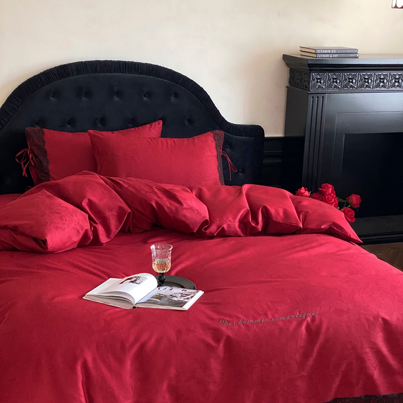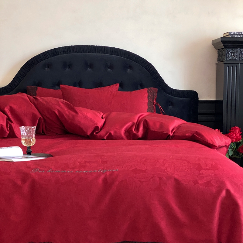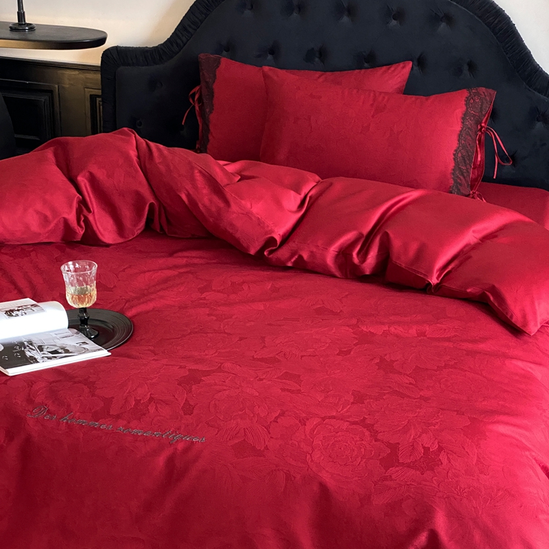 商品名称:(总)初拾 2025新款100s全棉纯棉红色提花简约婚庆四件套 爱琴海系列