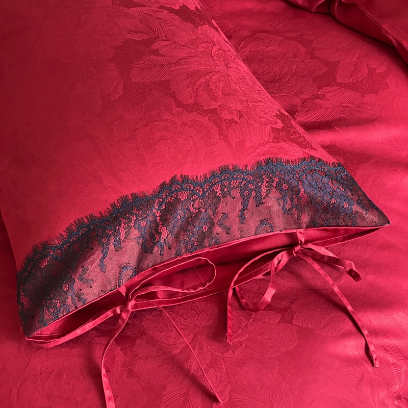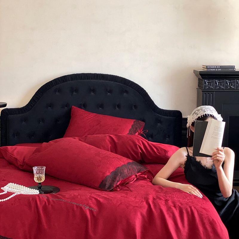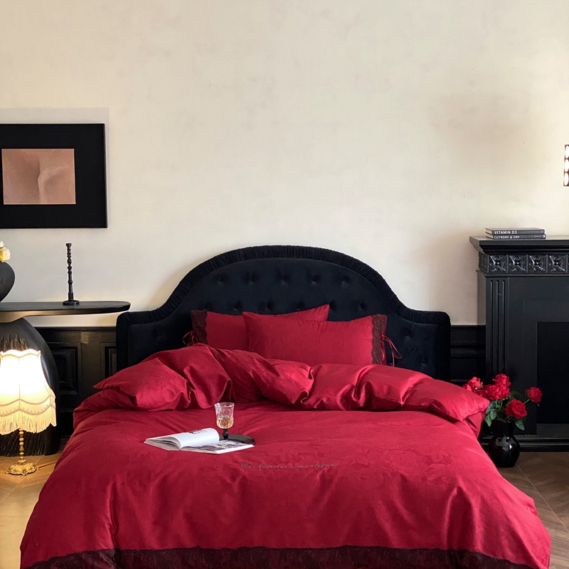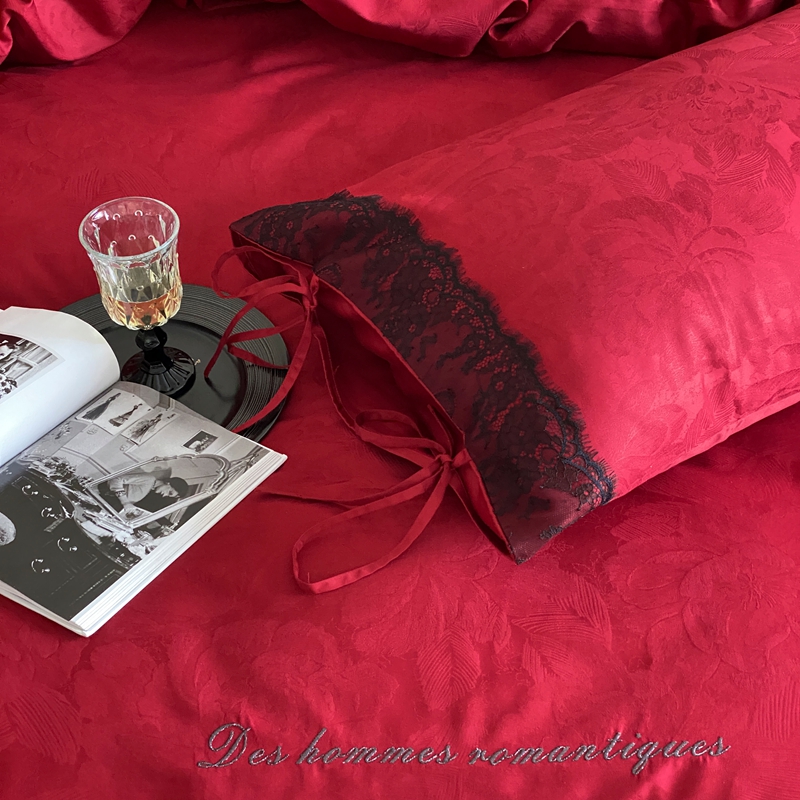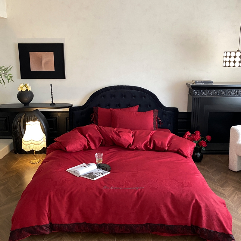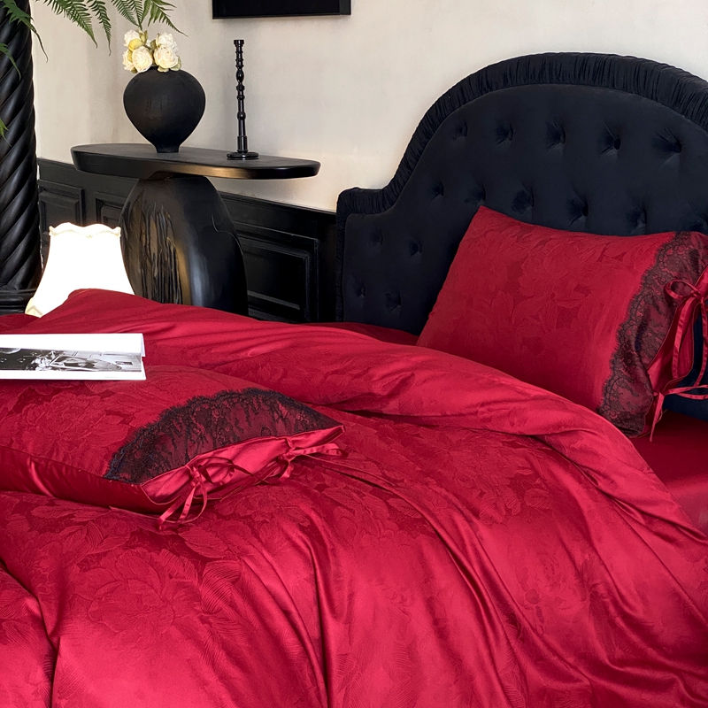 商品名称:(总)初拾 2025新款100s全棉纯棉红色提花简约婚庆四件套 爱琴海系列