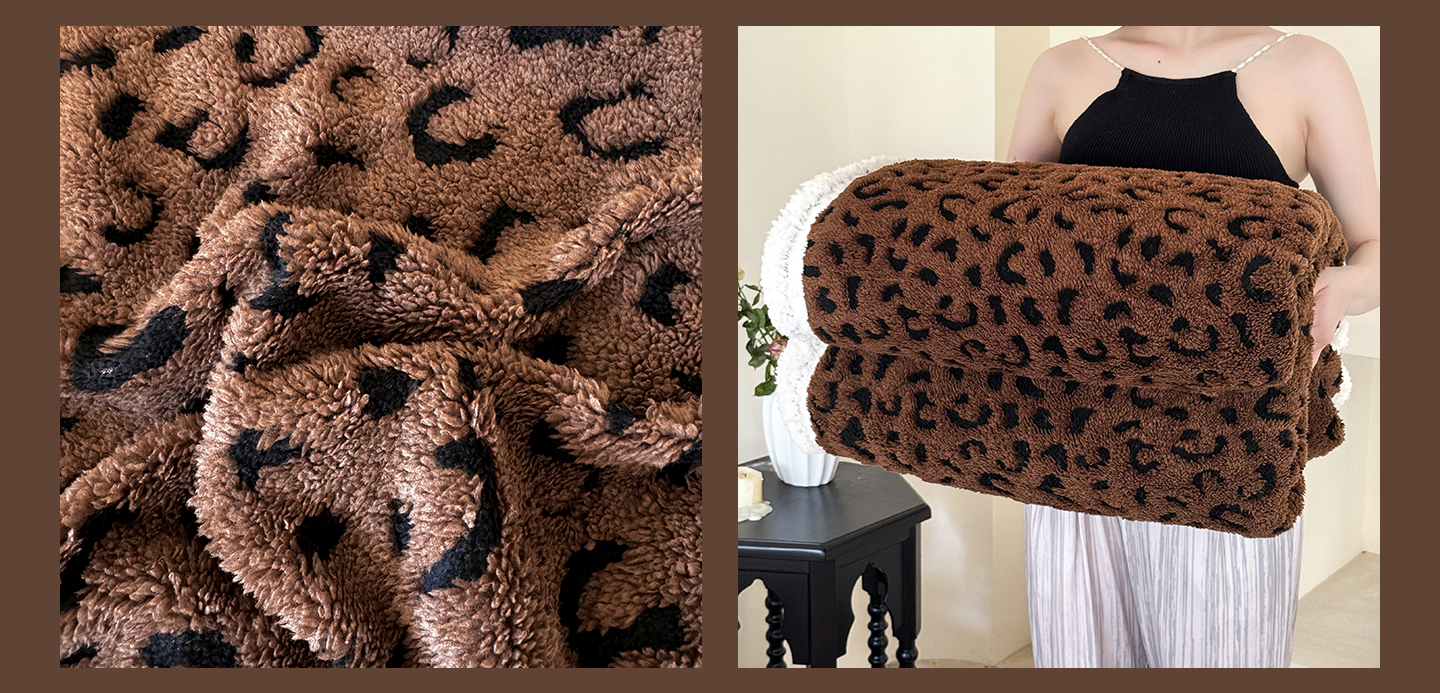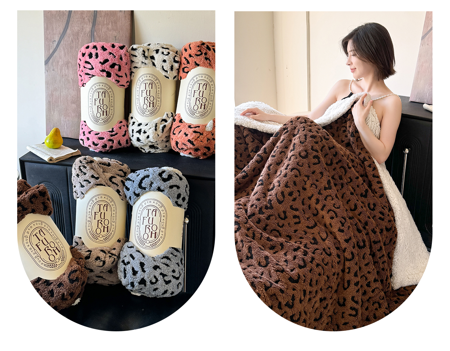 丹本家纺 2025新款双层阳离子提花塔芙绒羊羔绒跨境双层毛毯盖毯毯子 豹纹咖
