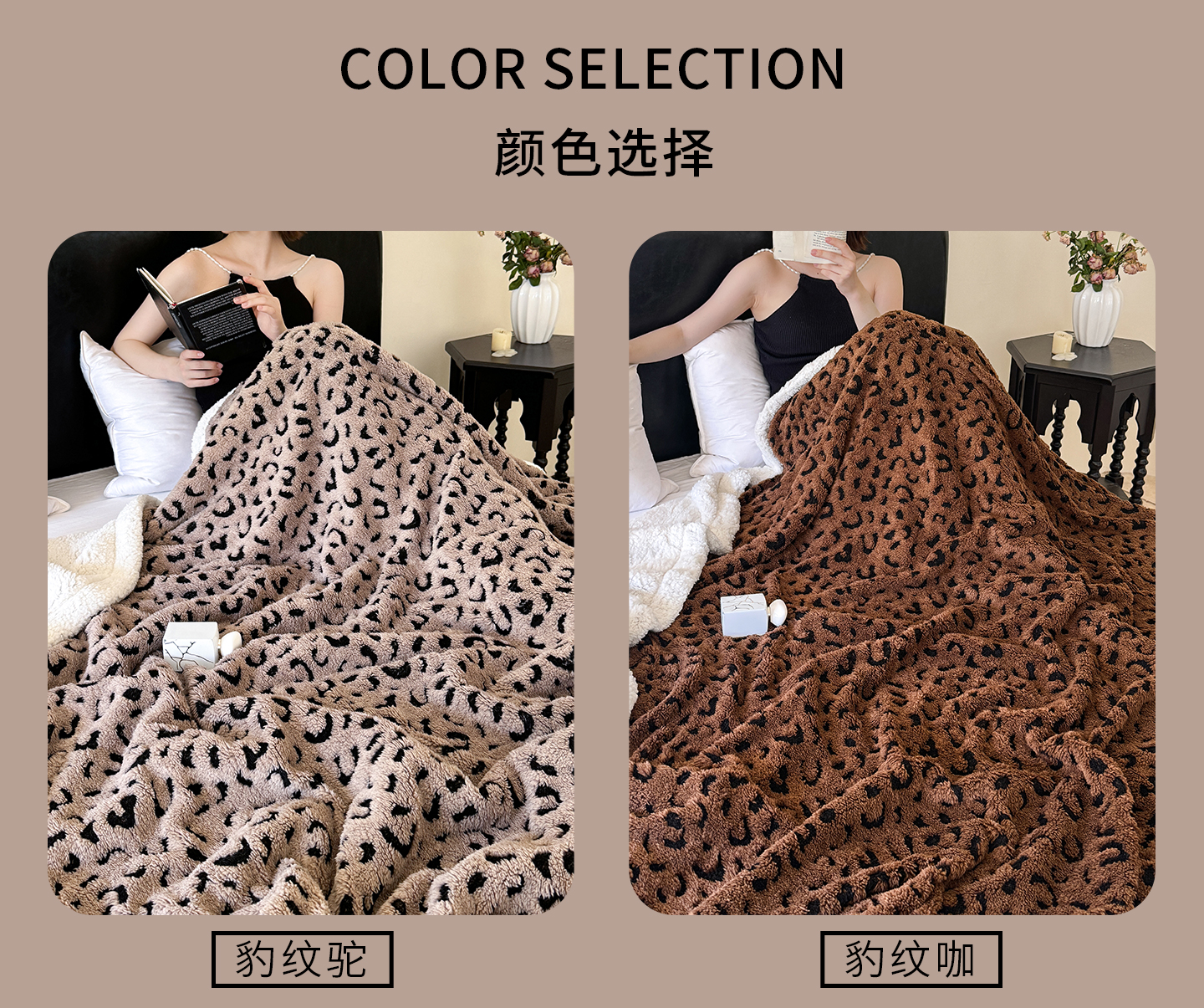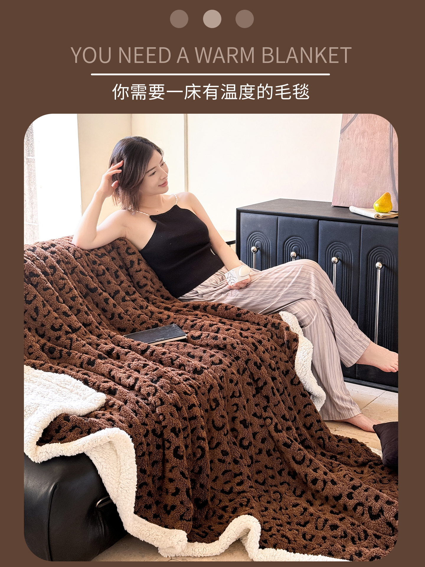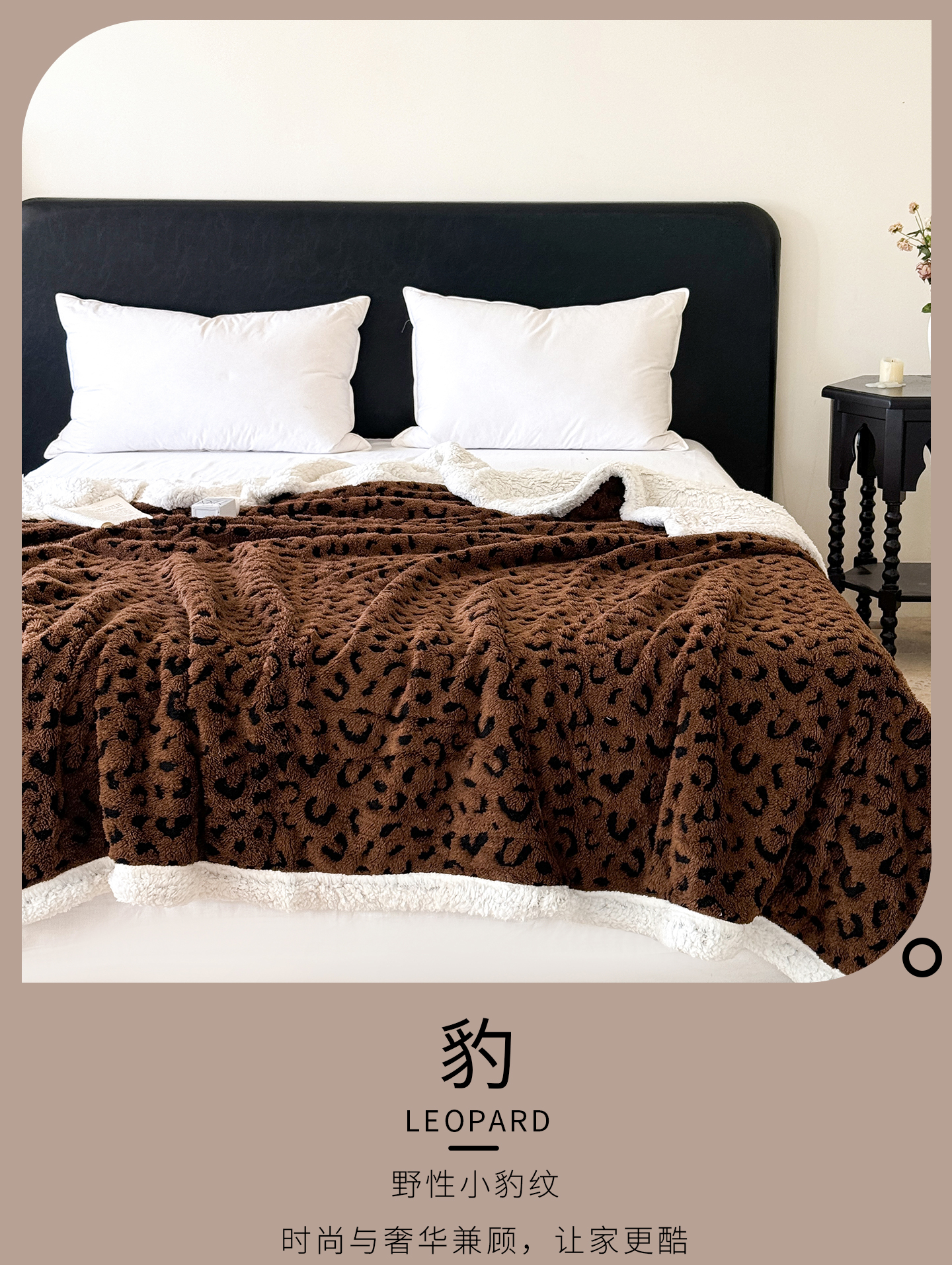 商品名称:丹本家纺 2025新款双层阳离子提花塔芙绒羊羔绒跨境双层毛毯盖毯毯子 豹纹咖