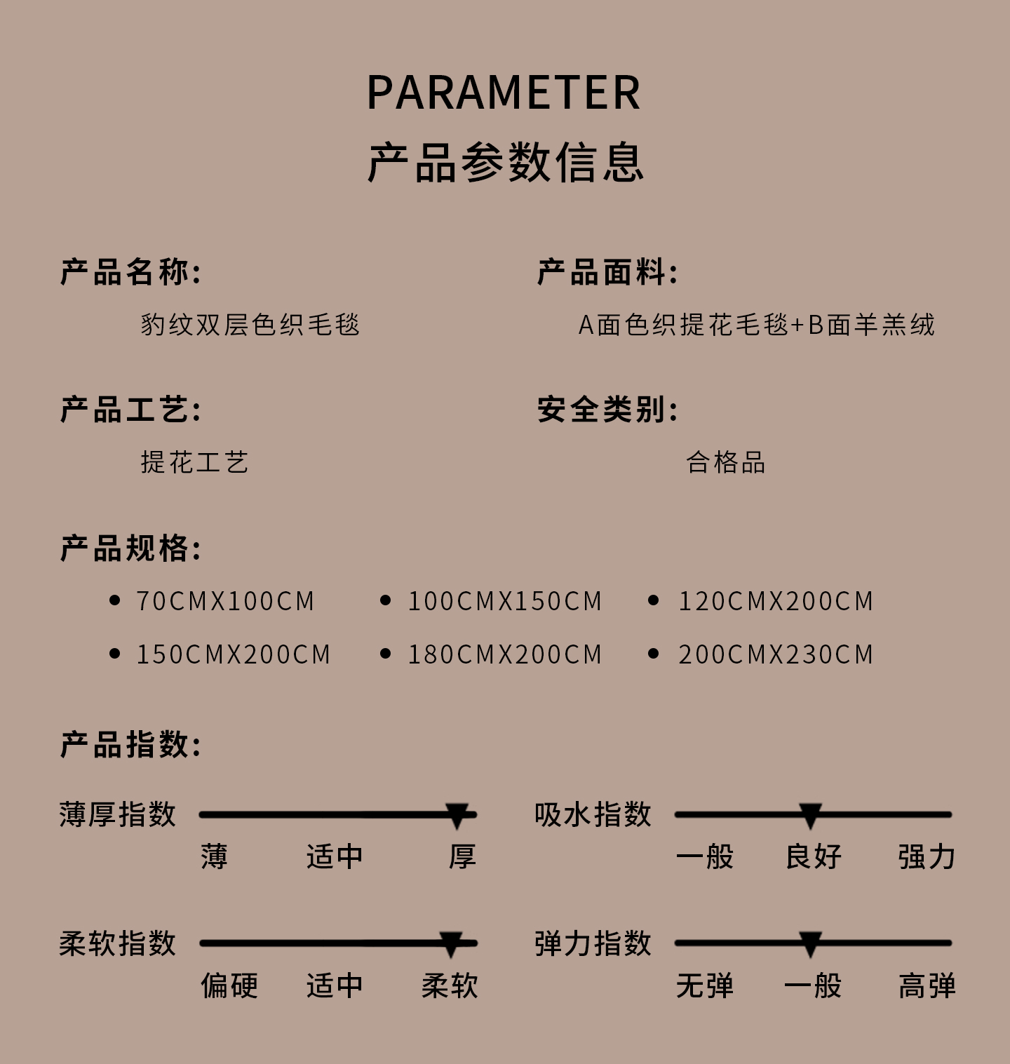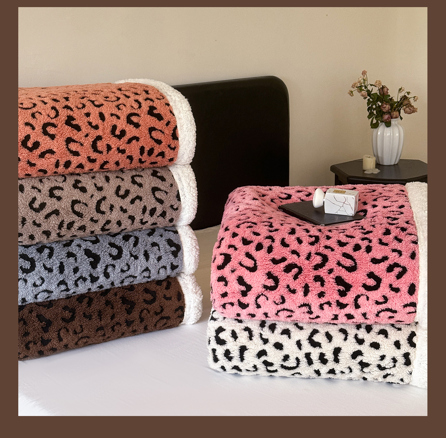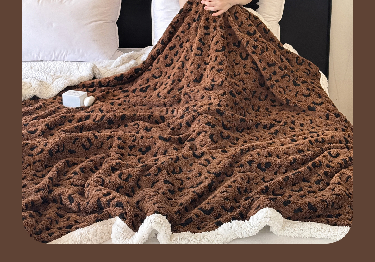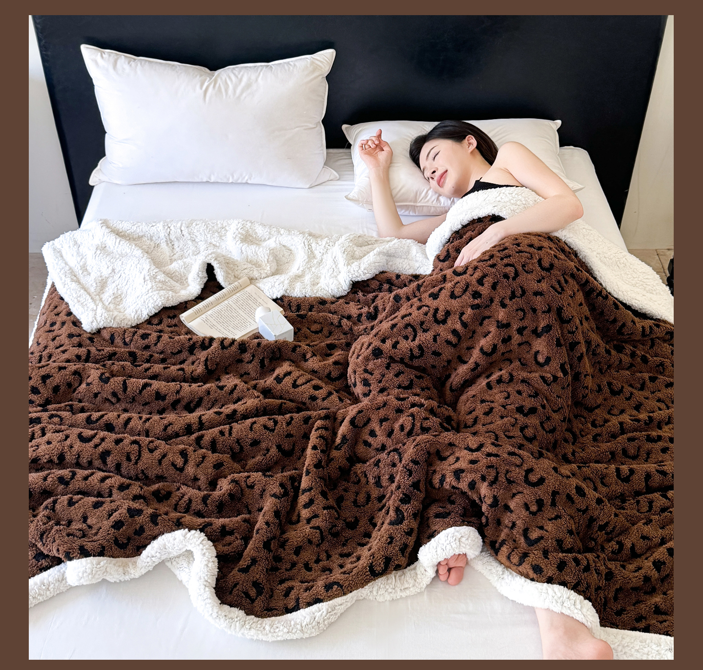 商品名称:丹本家纺 2025新款双层阳离子提花塔芙绒羊羔绒跨境双层毛毯盖毯毯子 豹纹咖