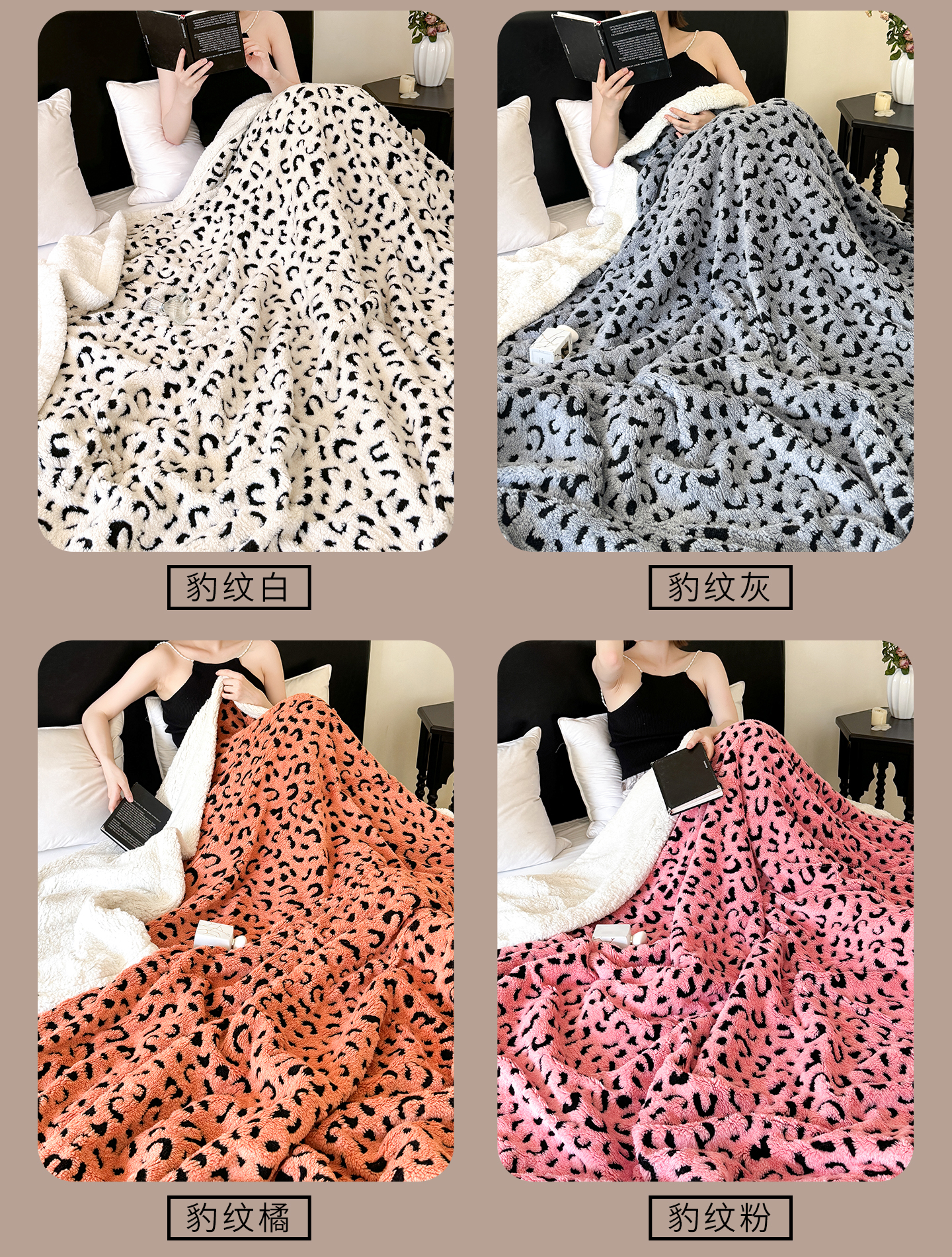 (总)丹本家纺 2025新款双层阳离子提花塔芙绒羊羔绒跨境双层毛毯盖毯毯子,豹纹白,豹纹粉,豹纹灰,豹纹橘,豹纹咖,豹纹驼